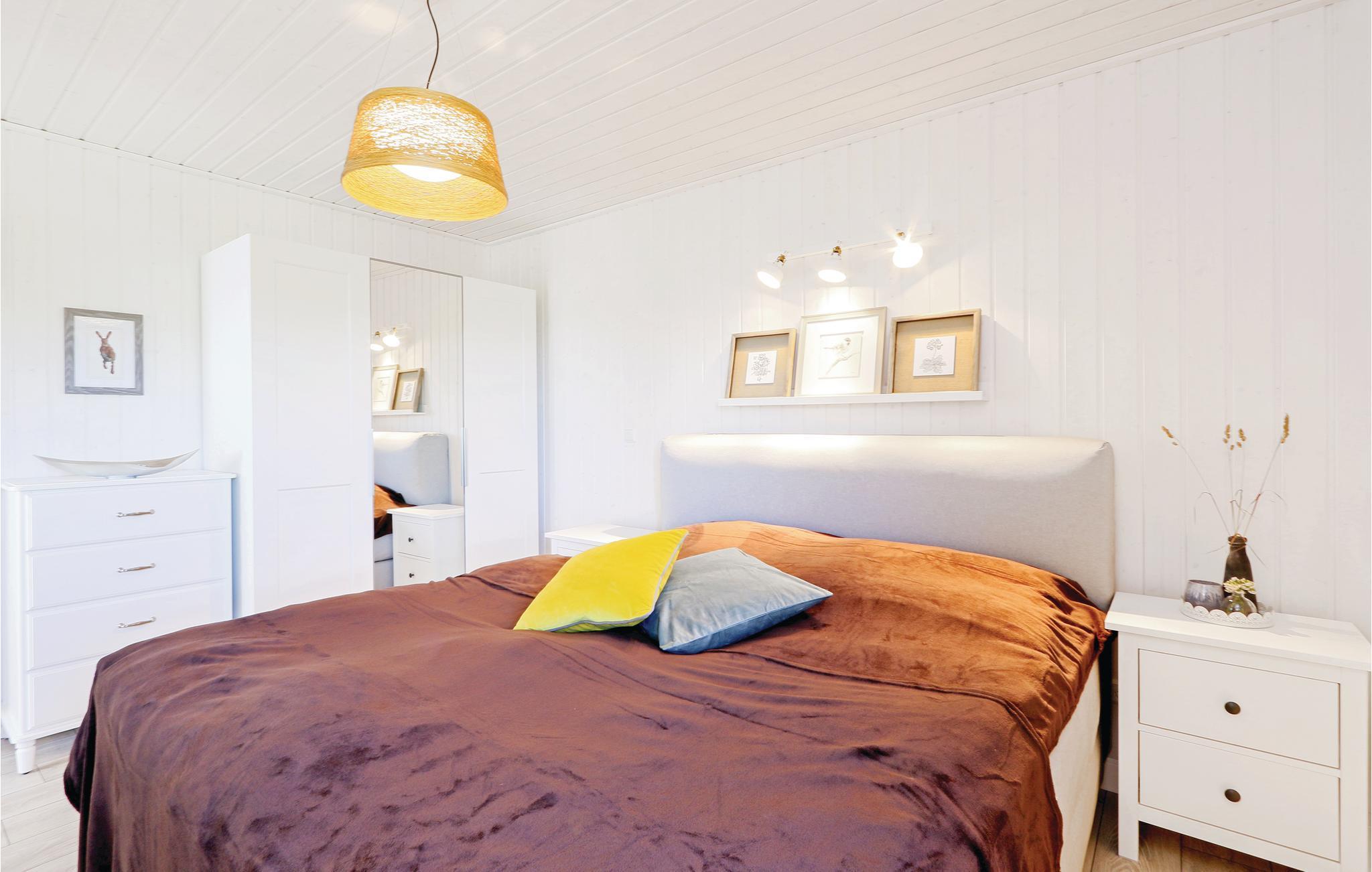 I semesterhuset kan du förvänta dig mycket underhållning med en Blu-Ray-spelare och två tv-apparater. Tack vare den galleriliknande första våningen och panoramafönstren är huset ljust och vänligt, och inredningen med mycket trä och varma toner bidrar till mysigheten. En grill finns på den rymliga terrassen, så att inget står i vägen för en rejäl grillkväll. På baksidan av huset bjuder en dubbelbänk med bord in till att dröja kvar och erbjuder en vidsträckt utsikt över ängar och fält.