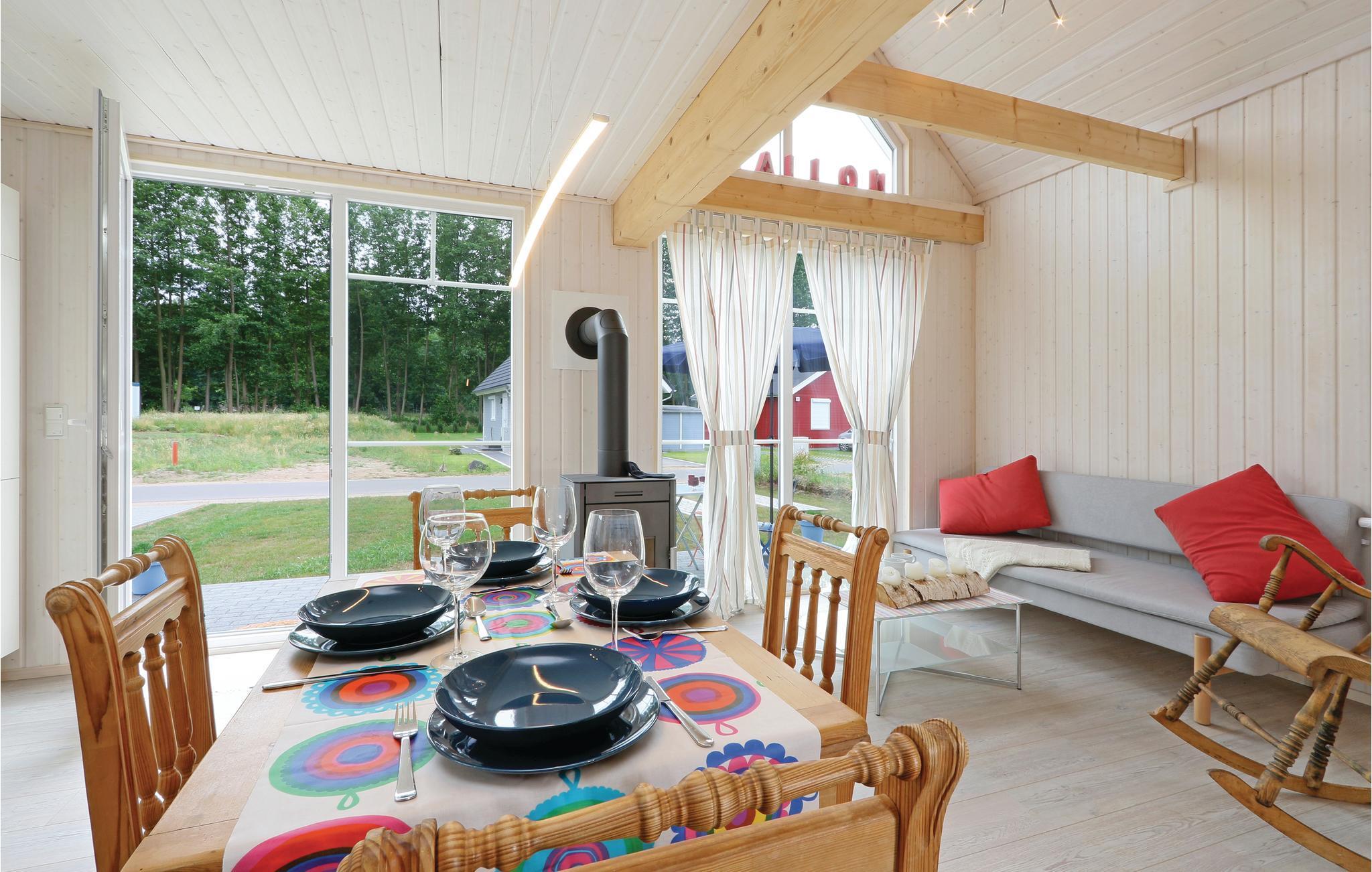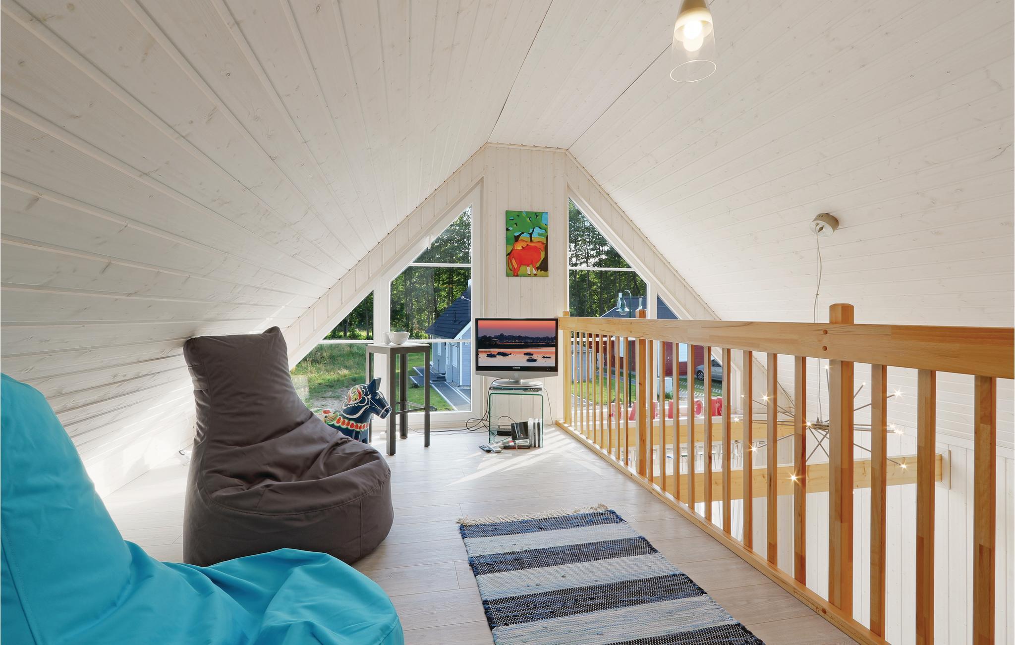 Det första separata sovrummet är utrustat med en mysig dubbelsäng. I det andra sovrummet finns ytterligare två sovplatser. Här i hamnbyn kan du koppla av året runt och ta ett djupt andetag. I vardagsrummet kan du göra det bekvämt under kalla dagar framför den öppna spisen med hela familjen och titta på lågorna från den sprakande brasan.