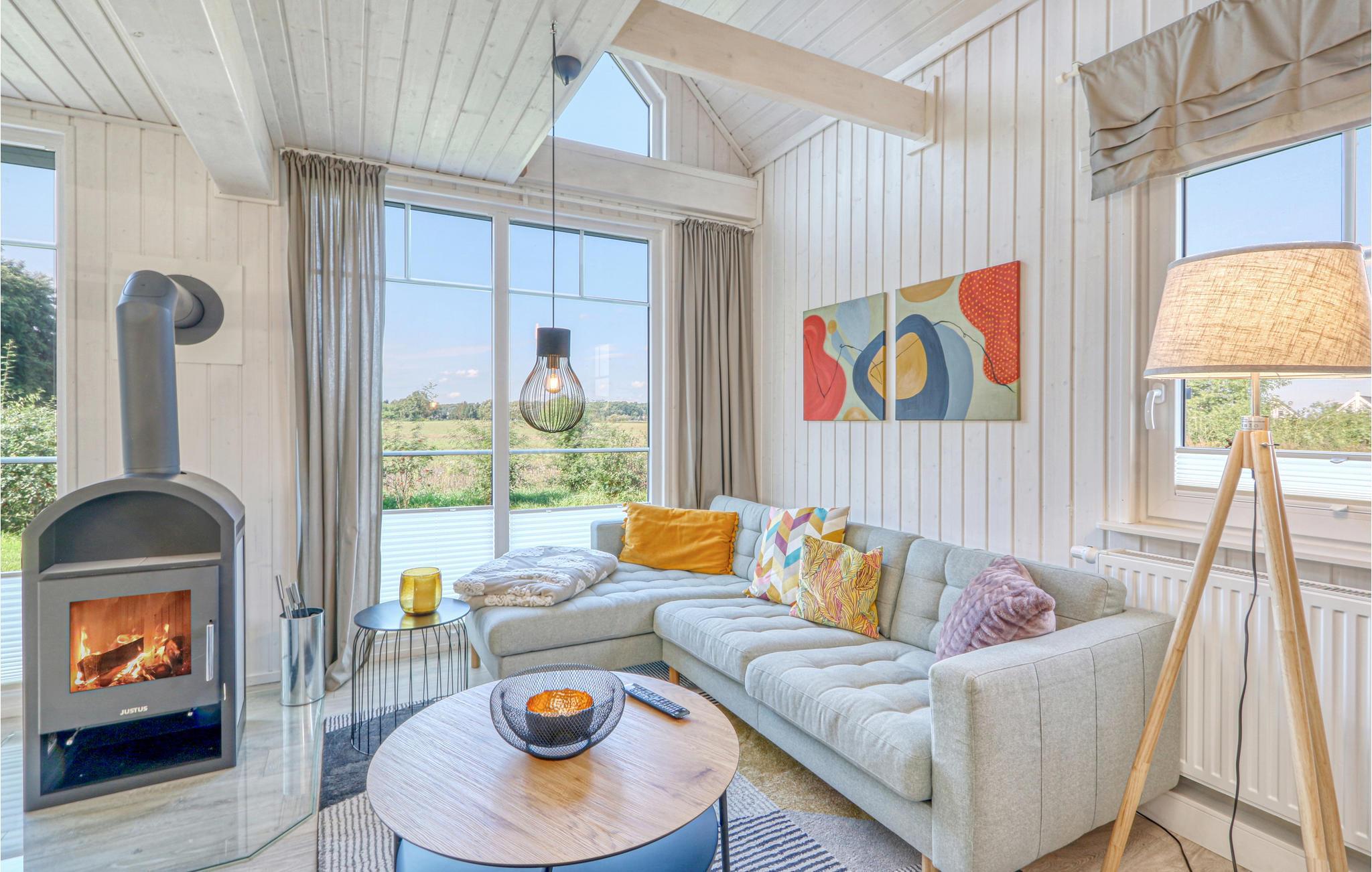 Det ljusa semesterhuset "Biber" ligger i utkanten av anläggningen och erbjuder en vacker utsikt över landskapet. På den öppna solterrassen framför huset kan du koppla av i solstolen eller grilla tillsammans på kvällen. Semesterhuset är inrett i skandinavisk stil, inredningen med mycket trä skapar en särskilt mysig atmosfär.