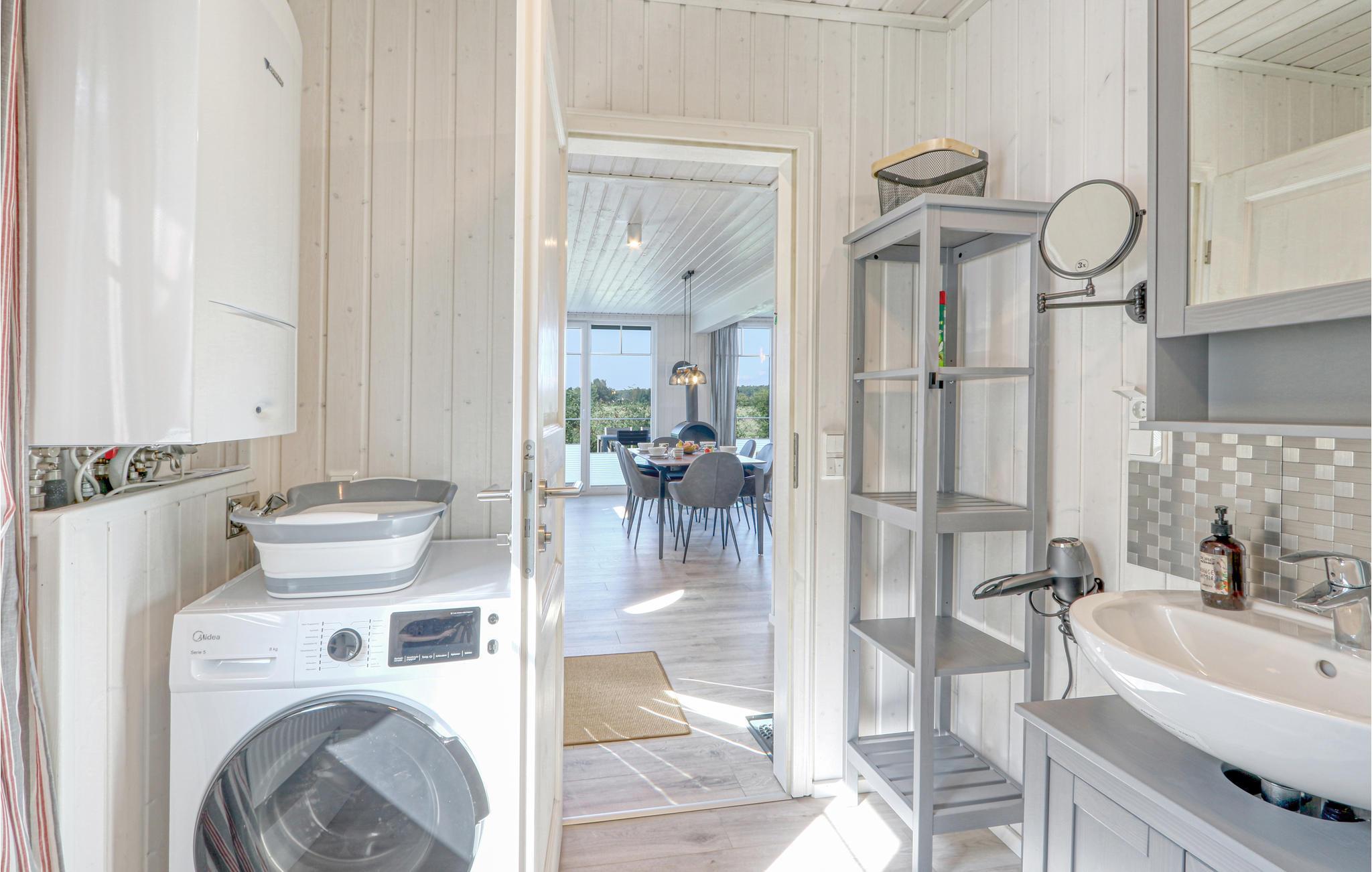 Semesterhuset har ett modernt utrustat kök med angränsande matplats och vardagsrum. Detta inbjuder till en mysig middag med hela familjen. På galleriet på första våningen kan du njuta av en unik utsikt över fastigheten genom de fönster som går från golv till tak. Semesterhuset har två separata, ljusa sovrum. Duschrummet med dagsljus och högkvalitativ wellnessdusch avrundar din lyckade semesterdag.