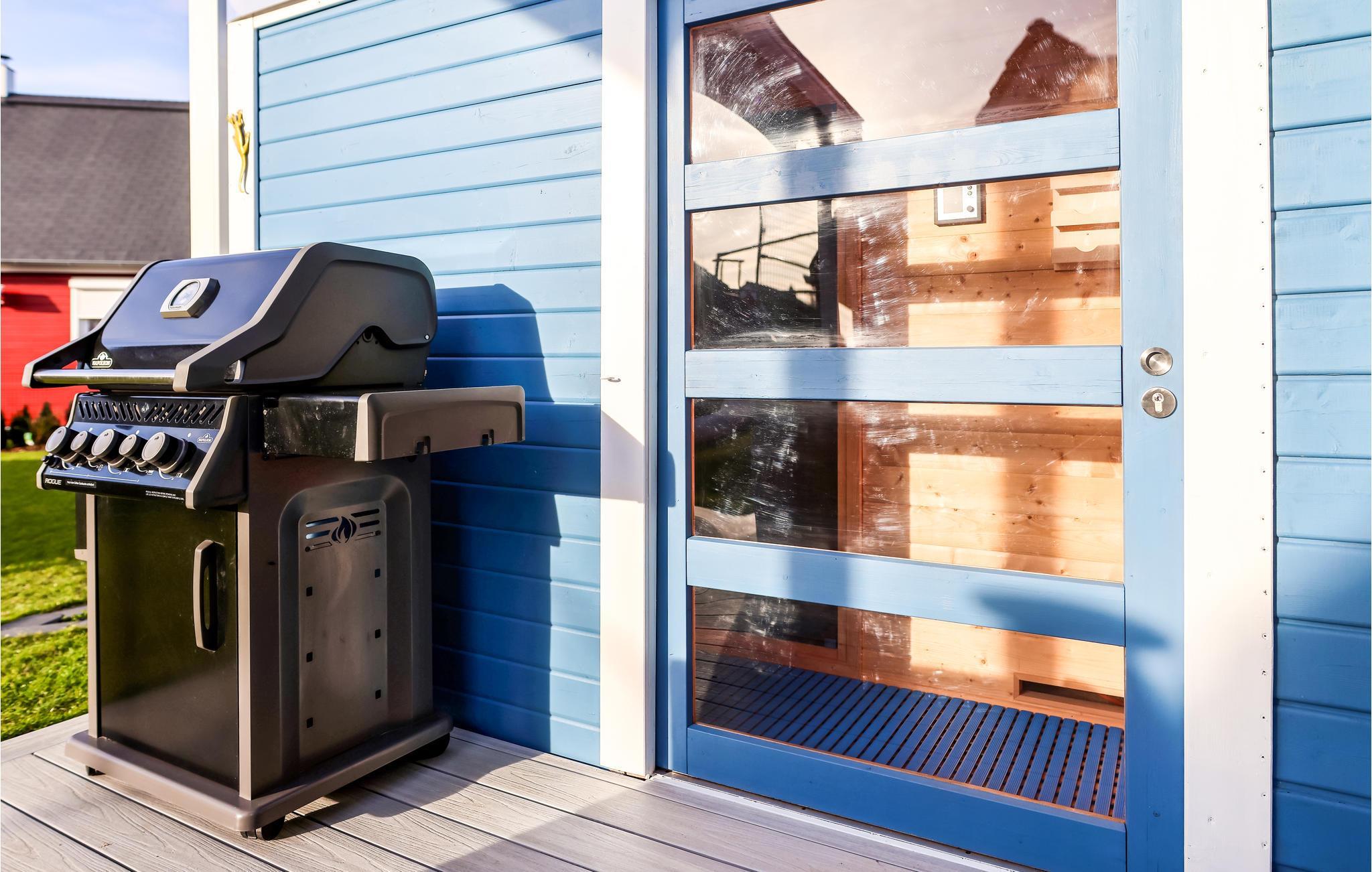 Solterrassen inbjuder till att dröja kvar och koppla av. Här finns en gasolgrill och trädgårdsmöbler av hög kvalitet redo för dig. Oavsett om det är på terrassen för trevliga sommarkvällar, inne i huset framför den sprakande brasan eller på det öppna galleriet: avkoppling är garanterad här.