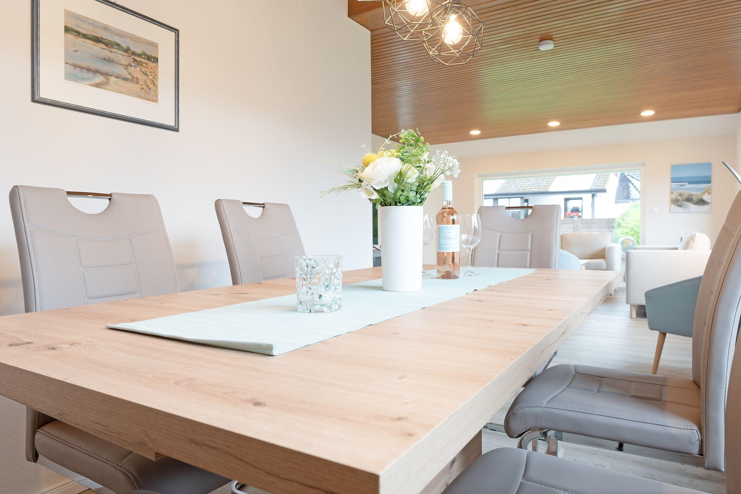 Großzügiges 6-Zimmer-Ferienhaus in Haffkrug mit 4 Schlafzimmern, Wintergarten, Balkon und Garten. Auf ca. 139 m² Wohnfläche können sich bis zu 7 Personen ganz wie zu Hause fühlen.