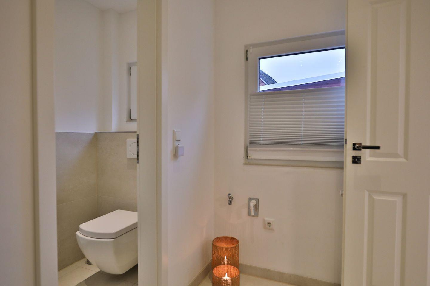 Im Erdgeschoss betreten Sie einen lichtdurchfluteten Flur mit Garderobe. Rechterhand erstreckt sich ein offenes und geräumiges Esszimmer, das wie ein Wintergarten gestaltet ist. Dank der großflächigen Fensterfront wird dieser Raum stets von Licht durchströmt. Hinter dem Esszimmer liegt der gemütliche Wohnbereich mit einem ausziehbaren Ecksofa (140x200 cm), Sessel und Flachbildfernseher. Eine Schiebetür führt vom Wohnbereich zum ersten Schlafzimmer mit einem komfortablen Doppelbett (180x200 cm). Durch den Flur gelangen Sie zur modernen und gut ausgestatteten Küche mit einem mobilen 2-Platten-Induktionskochfeld. Hinter der Küche befindet sich eine Duschnische (80x80 cm) mit Glasabtrennung, Waschbecken und einem kleinen Fenster. Das hintere (Kinder-) Schlafzimmer mit Kojenbett grenzt an das helle und modern eingerichtete Badezimmer mit großer, bodengleicher Dusche, zwei Waschbecken, Fußbodenheizung und separater Toilette.