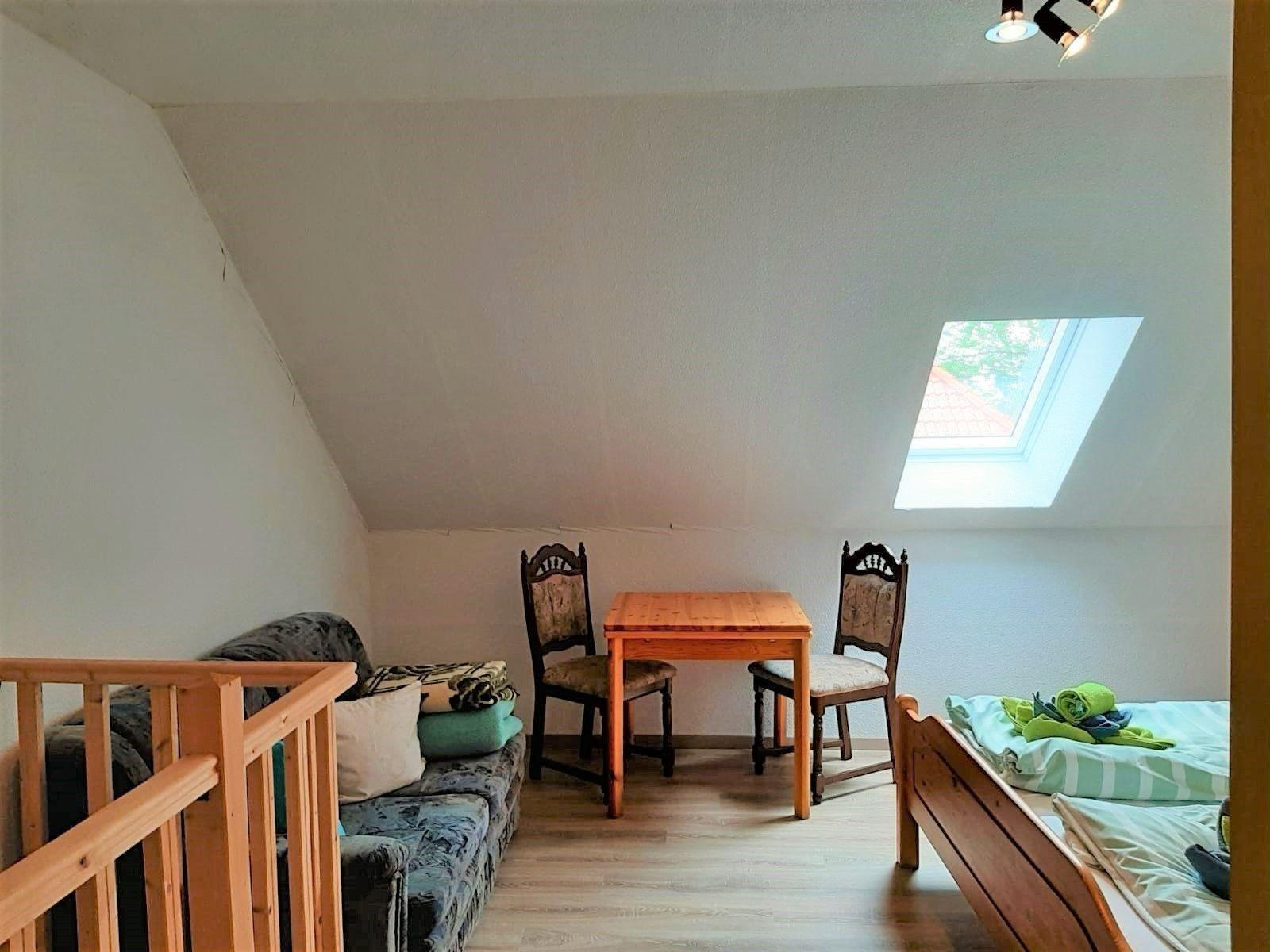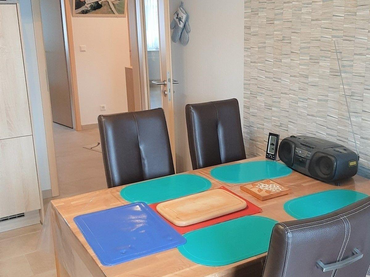 Das Badezimmer ist mit einer bodengleichen Dusche und einem Fenster ausgestattet, was für zusätzliche Helligkeit sorgt. Ein Esstisch bietet ausreichend Platz für gemeinsame Mahlzeiten. Zur weiteren Ausstattung gehören WLAN-Internet, eine HiFi-Anlage, TV und Fußbodenheizung. Der Parkplatz vor dem Haus sowie die Waschmaschine, Staubsauger und der Wäscheständer machen den Aufenthalt noch angenehmer. Das gemütliche Sofa und der Sessel laden zum Entspannen ein.