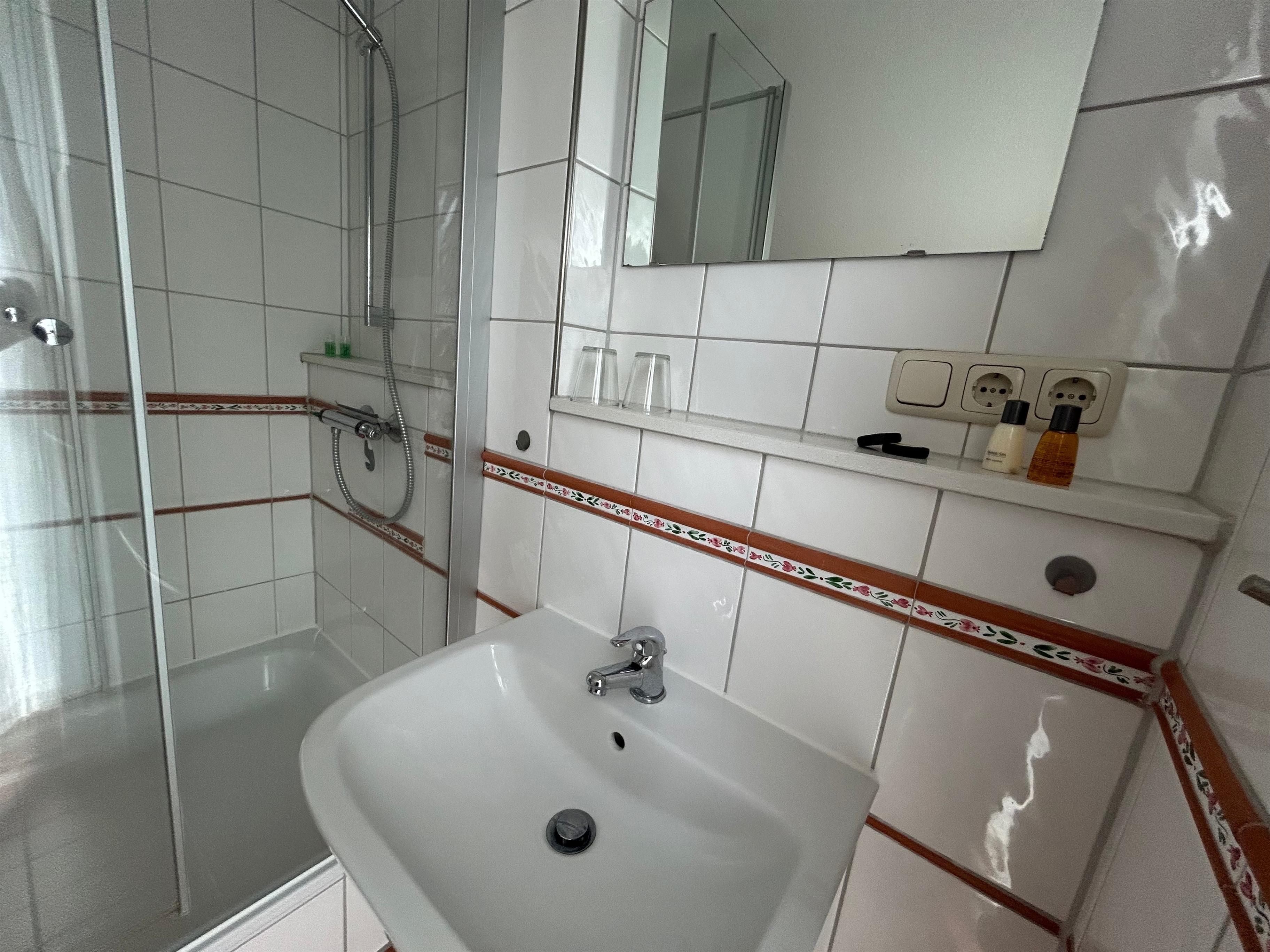 Badrum med dusch och badkar