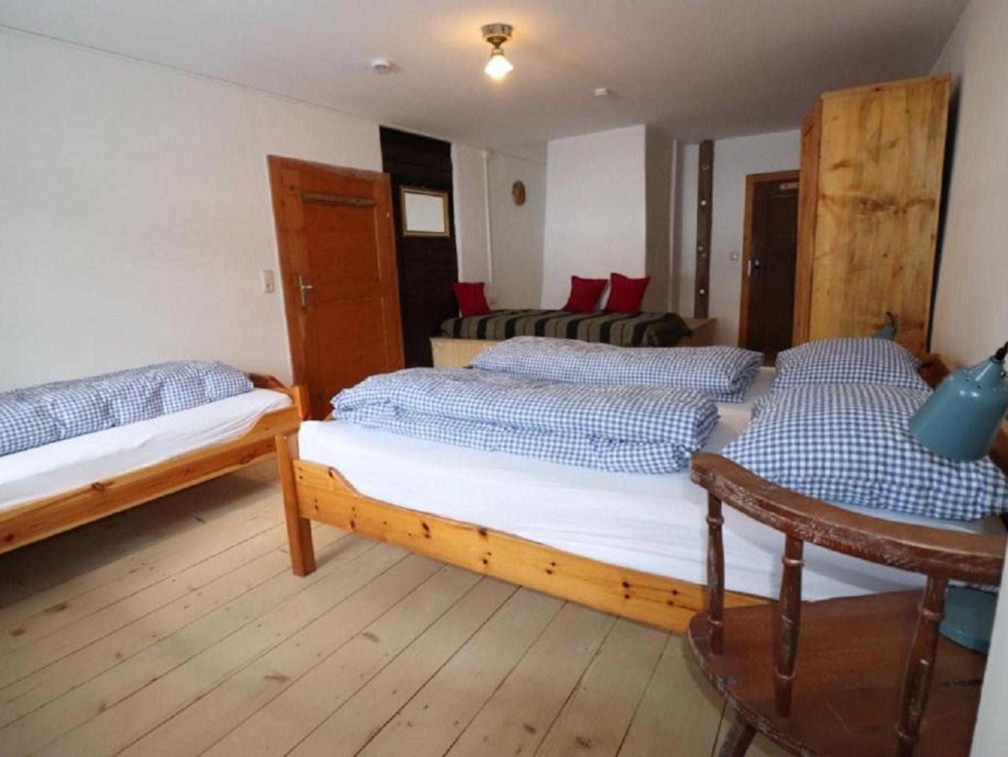 Die 6 angegebenen Schlafzimmer befinden sich im 1. Obergeschoss: ein Doppelzimmer, zwei Dreibettzimmer und drei Vierbettzimmer. Weitere 7 Schlafzimmer liegen im Dachgeschoss: zwei Einzelzimmer, drei Doppelzimmer und zwei Dreibettzimmer.