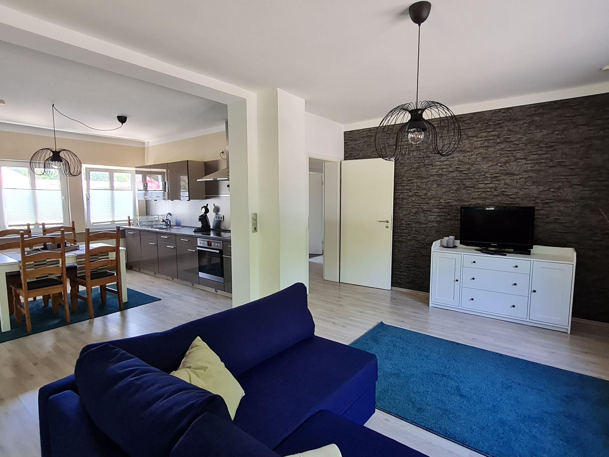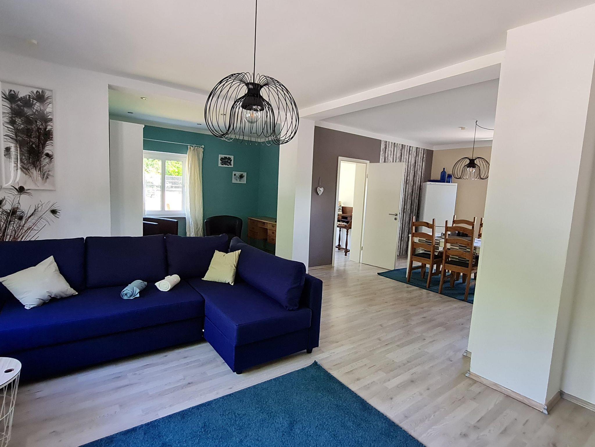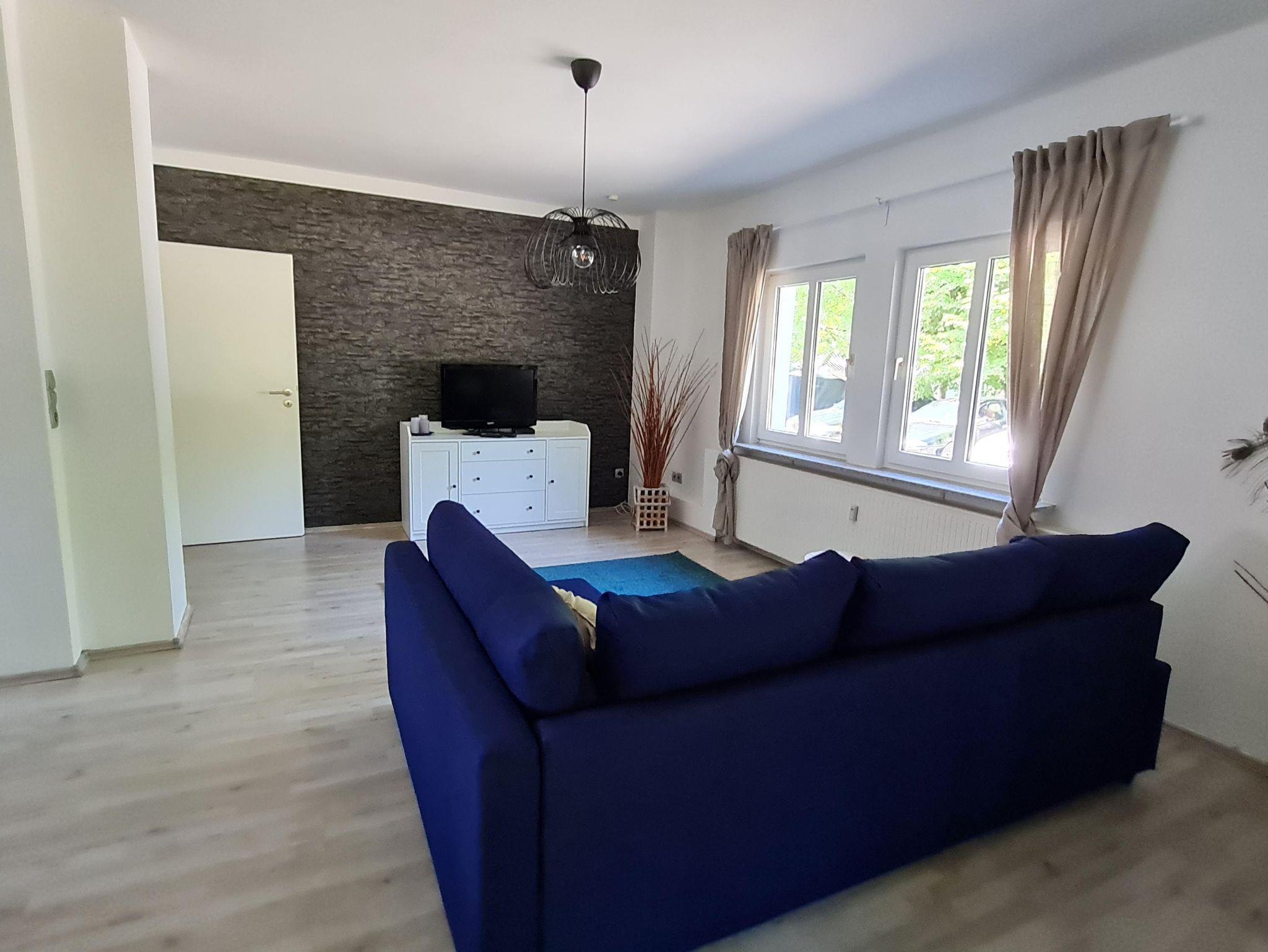 Die Couch im Wohnzimmer lässt sich zu einer Schlafcouch umfunktionieren, so dass 4 Personen in der Wohnung Platz finden.