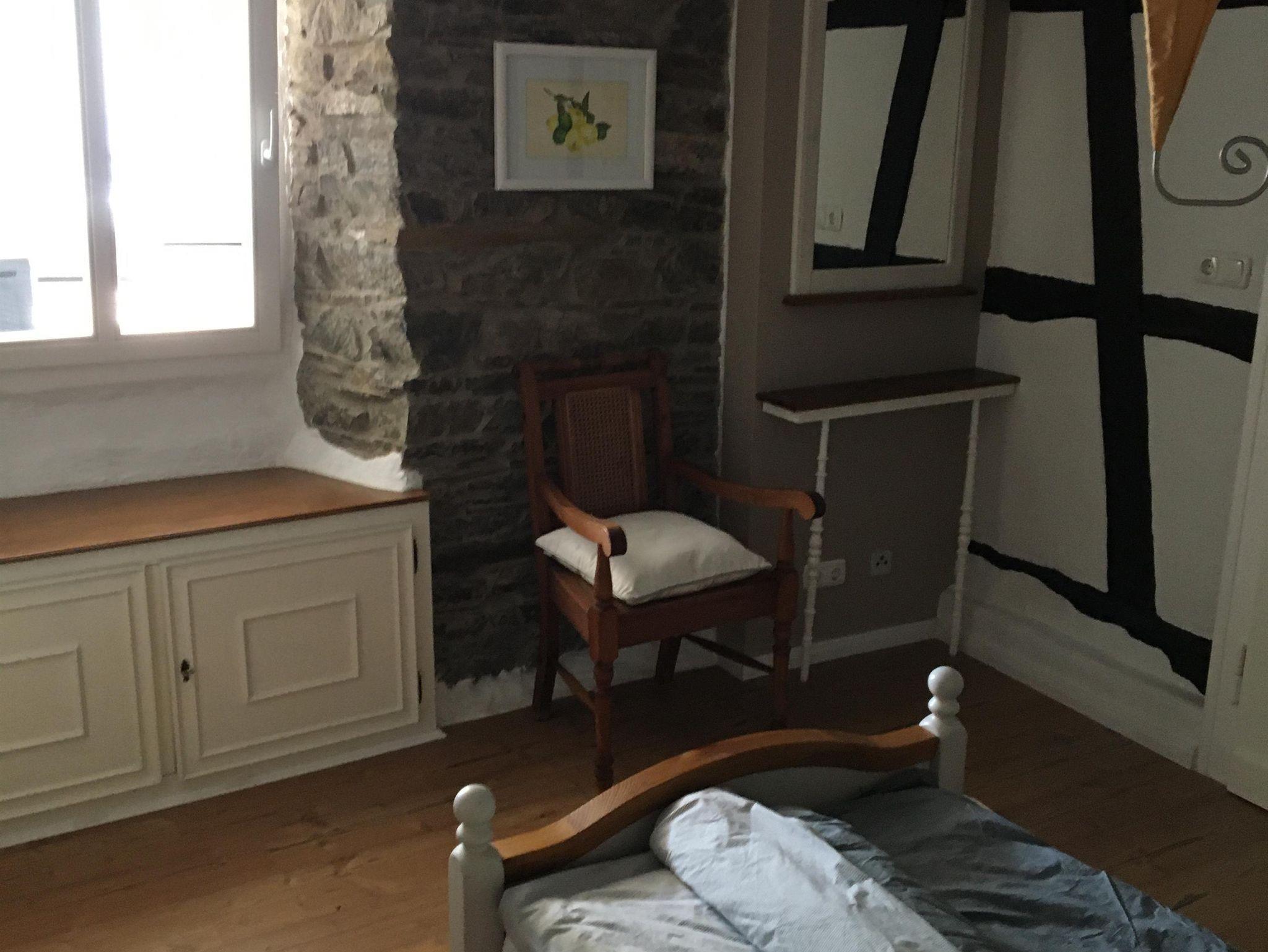 Gemütlich eingerichtete Ferienwohnung im Erdgeschoss eines alten Winzerhauses mit begehbarer Dusche und einer großen Dachterrasse mit Blick auf Burg Bischofstein und Alte Kirche St. Johannes in den Weinbergen.