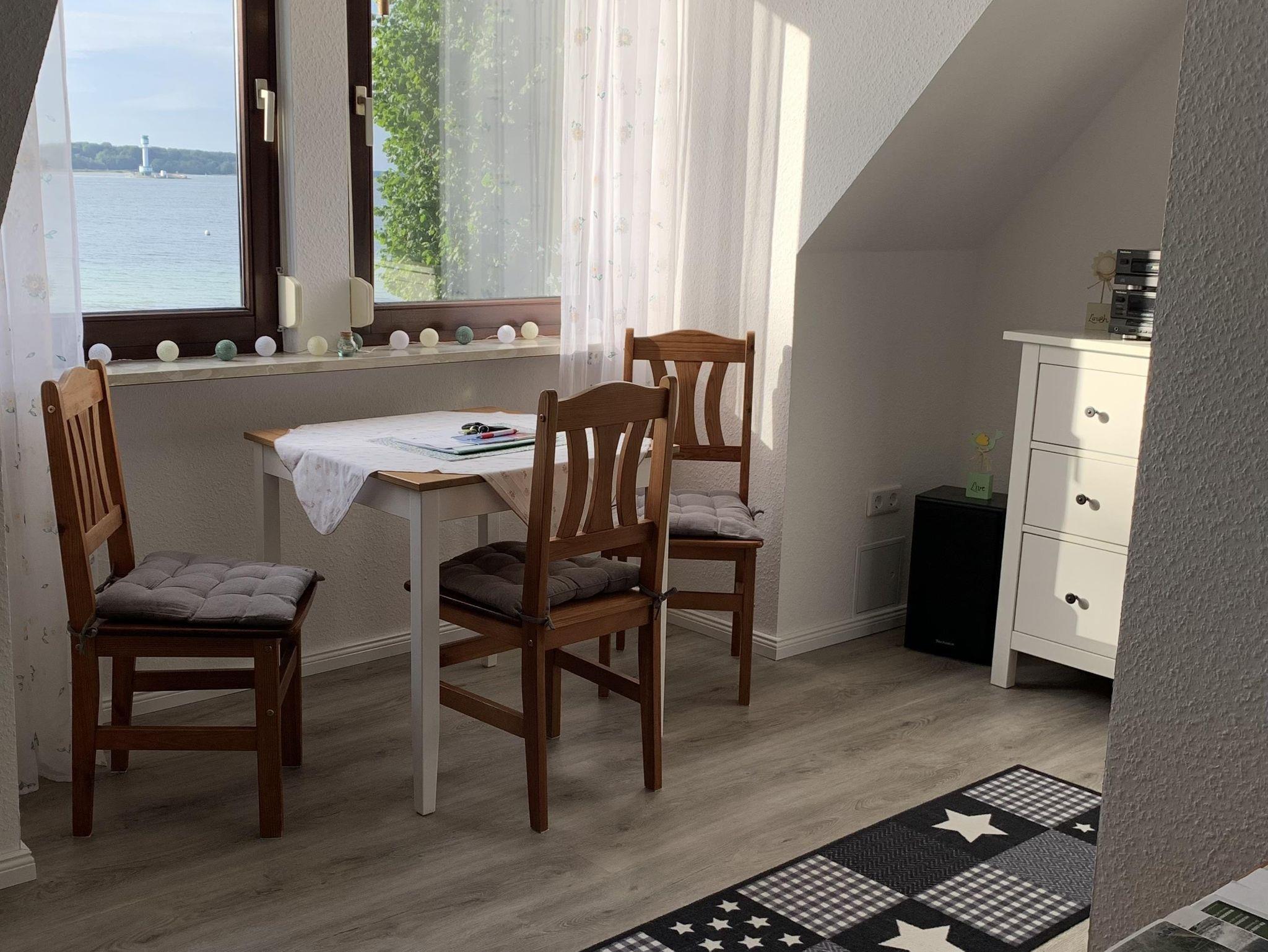 Die Ferienwohnung befindet sich in der oberen Etage eines Einfamilienhauses in unmittelbarer Nähe zum Strand, direkt an der Strandpromenade. Es handelt sich um eine Nichtraucherwohnung mit einer Gesamtfläche von ca. 50m². Sie verfügt über eine hochwertige, neue Einbauküche mit Essbereich. Die Einbauküche ist mit Kochutensilien sowie Backofen, Kaffeemaschine, Wasserkocher, Toaster komplett ausgestattet. In dem großen kombinierten Wohn- und Schlafraum stehen u. a. ein Doppelbett und ein Bauernschrank für Ihre Kleidung. In dem Wohnbereich finden Sie ein gemütliches Sofa mit Couchtisch vor. Die gesamte Wohnung wurde in dem Jahre 2021 von Grund auf renoviert, so auch das kleine Badezimmer mit Badewanne. Die Wohnung wurde mit einem ansprechenden Vinyl-Fußboden ausgelegt und mit viel Liebe hergerichtet. Es erwartet Sie ein traumhafter Ausblick auf die Kieler Förde aus den Fenstern der Küche, des Essbereiches sowie auch aus dem Wohn- und Schlafbereich.