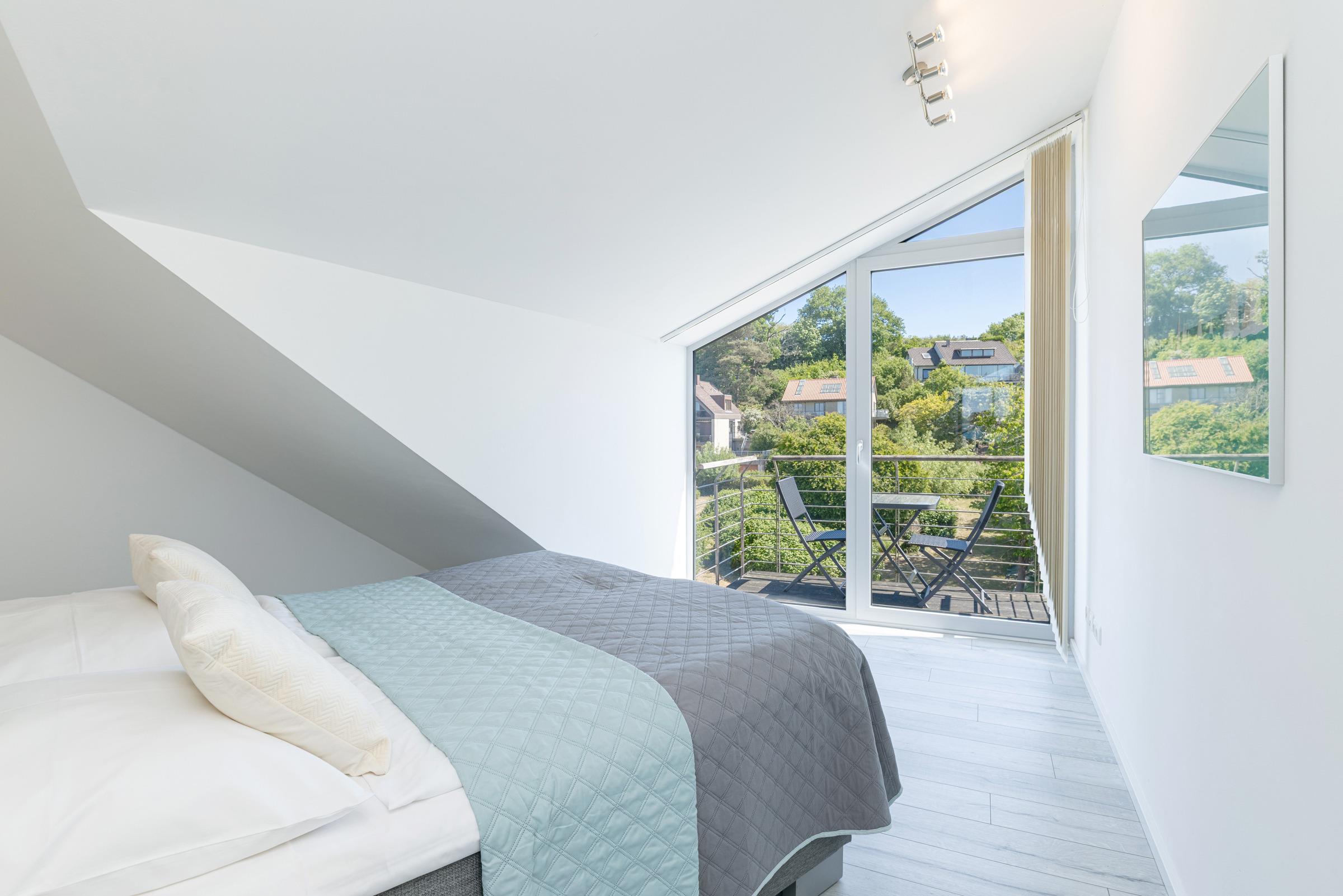 Diese hochwertig und modern eingerichtete 2-Zimmer-Ferienwohnung für maximal zwei Erwachsene - in der 2. Etage gelegen - verfügt über 1 separates Schlafzimmer mit Boxspringbett und begehbarem Balkon. Das große Tageslicht-Badezimmer verfügt über eine ebenerdige Dusche. Das sehr großzügige Wohnzimmer ist kombiniert mit einer offenen Wohnküche (Kochinsel mit Dunstabzug und Essbereich). Im Wohnbereich finden Sie eine bequeme Sofalandschaft und Sessel vor, die auf den Balkon und den Flachbildschirm ausgerichtet sind.