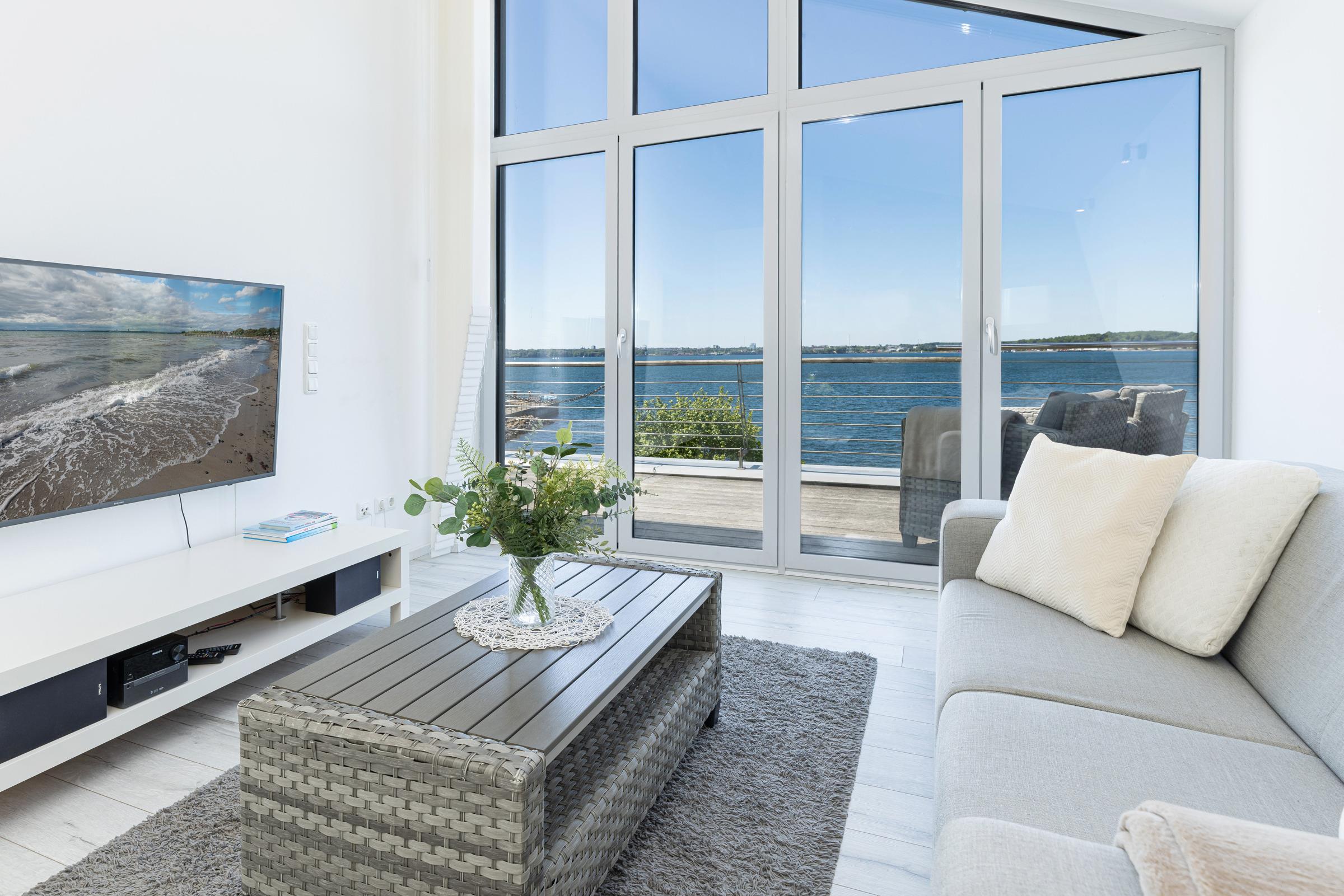 Exklusive, modern und großzügig ausgestattete Ferienwohnung mit traumhaften Fördeblick in unmittelbarer Nähe zum Strand und Hafen!