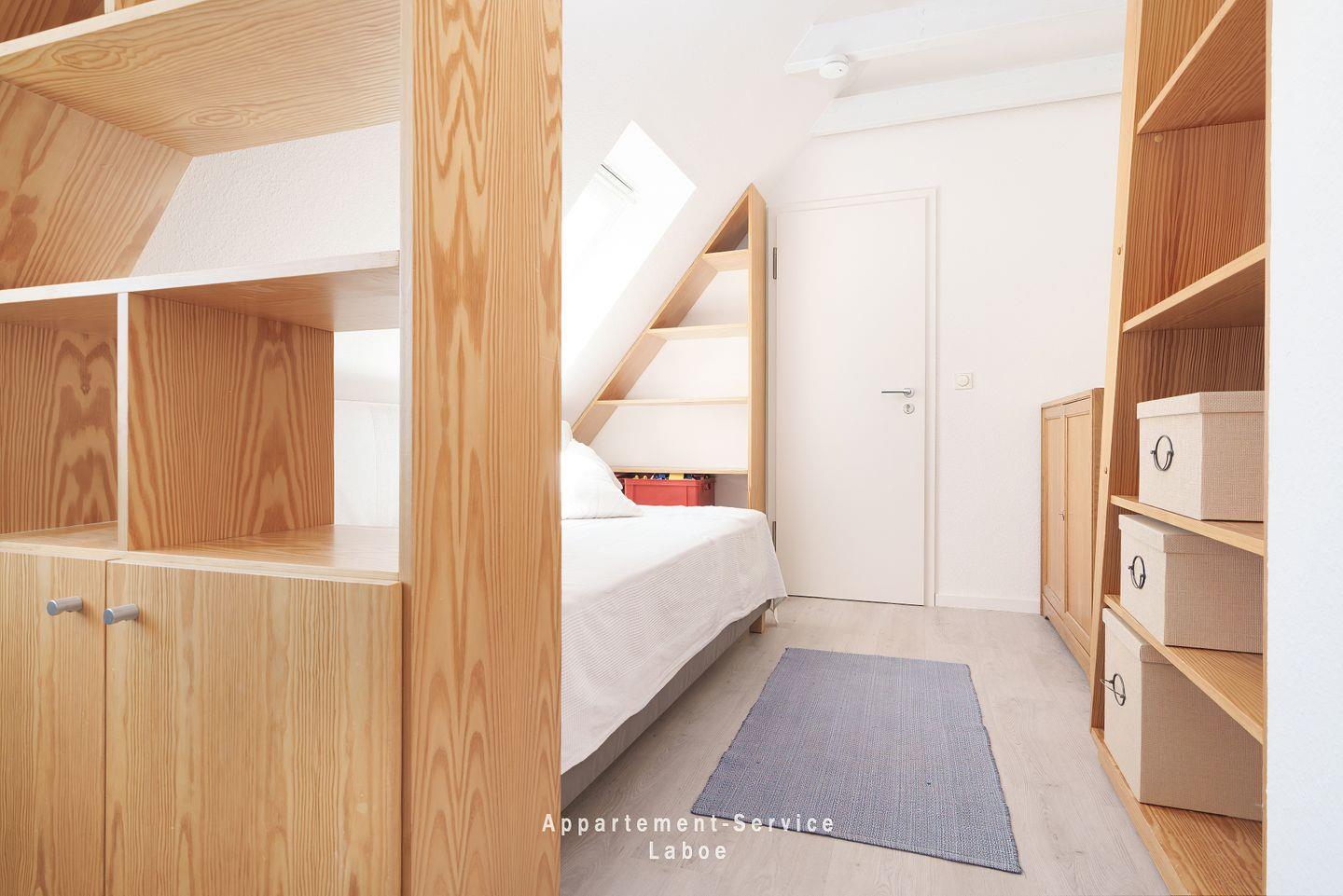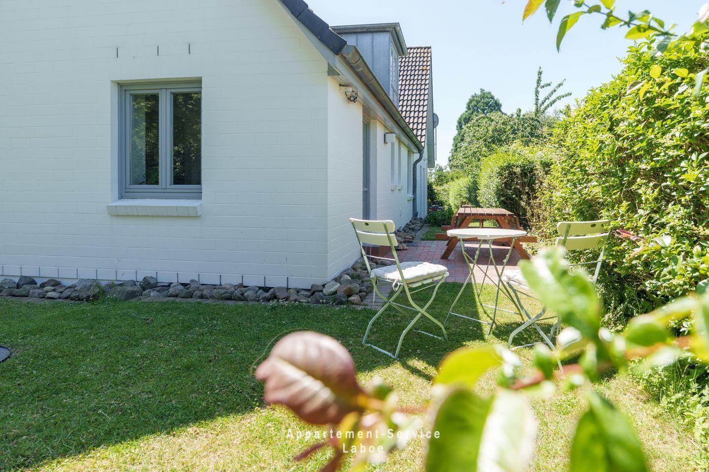 Die Küche ist großzügig geschnitten und bestens geeignet, um sich auch im Urlaub selbst zu versorgen. Hier wird gekocht, geschnippelt und gemeinsam gegessen. Durch die Fenster fällt der Blick in den kleinen Garten, der an warmen Tagen wie eine Verlängerung des Wohnzimmers wirkt. Auf der möblierten Terrasse kannst du morgens deinen Kaffee genießen und abends den Tag bei einem Glas Wein ausklingen lassen.
