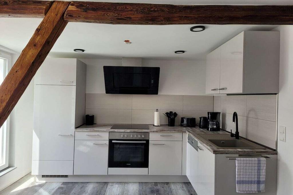 För perfekt avkoppling året runt erbjuder jag den cirka 45 kvm stora enrumslägenheten "Möwennest" (Måsboet) som din semesterort. Denna smakfullt möblerade lägenhet, perfekt för två personer (en tredje person finns tillgänglig på begäran), ligger på första våningen i en historisk byggnad i hjärtat av gamla stan. Byggnaden, som byggdes omkring 1900, inrymde en tunnbinderi- och tunntillverkningsverkstad i Heiligenhafen under 1920- och 30-talen. Huset ligger bara några minuter från hamnen, torget, stormarknaden och den nya strandpromenaden. Renoveringen av lägenheten "Möwennest" slutfördes i juli 2023, så den är praktiskt taget helt ny. Denna mysiga lägenhet, möblerad i industriell stil, har moderna, högkvalitativa bekvämligheter. Lägenheten "Möwennest" består av ett vardagsrum med ett öppet kök, som är fullt utrustat. Köket har diskmaskin, kylskåp, keramikhäll, ugn, brödrost, kaffebryggare och vattenkokare. Dessutom har vardagsrummet en högkvalitativ soffa och en mysig matplats. Sovrummet är möblerat med en bekväm futonsäng plus en bäddmadrass för en god natts sömn. Lägenheten "Möwennest" har ett modernt, mycket bekvämt duschrum med toalett och hårtork. Den absoluta höjdpunkten i lägenheten "Möwennest" är dock den stora balkongen i sydvästläge, där du kan njuta av vackra soliga dagar och kvällar. Utsikten över den avskilda trädgården inbjuder dig också att koppla av och varva ner. Ytterligare bekvämligheter inkluderar platt-TV, radio/CD-spelare och torkställning för kläder. Tvättmaskin/torktumlare, strykjärn och strykbräda finns också i byggnaden. Parkeringsplatser finns 200 meter bort, direkt vid sjön i inlandet. En vacker innergård med den gamla tunntillverkningsverkstaden (#LostPlace) och en grillplats inbjuder dig att dröja kvar och grilla.