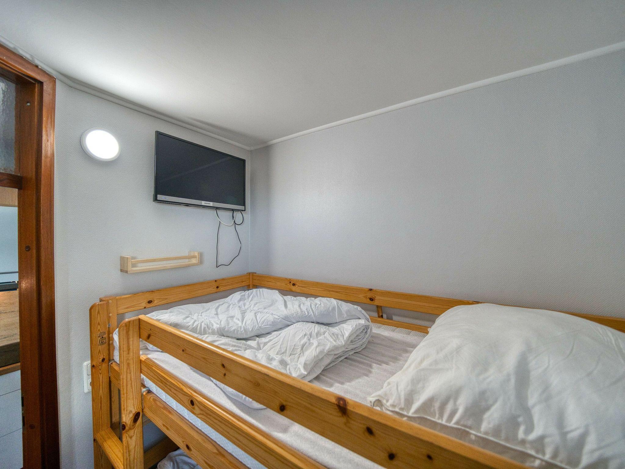 Separates Kinderzimmer mit Etagenbett, Verdunklungsrollos und eigenem Fernseher