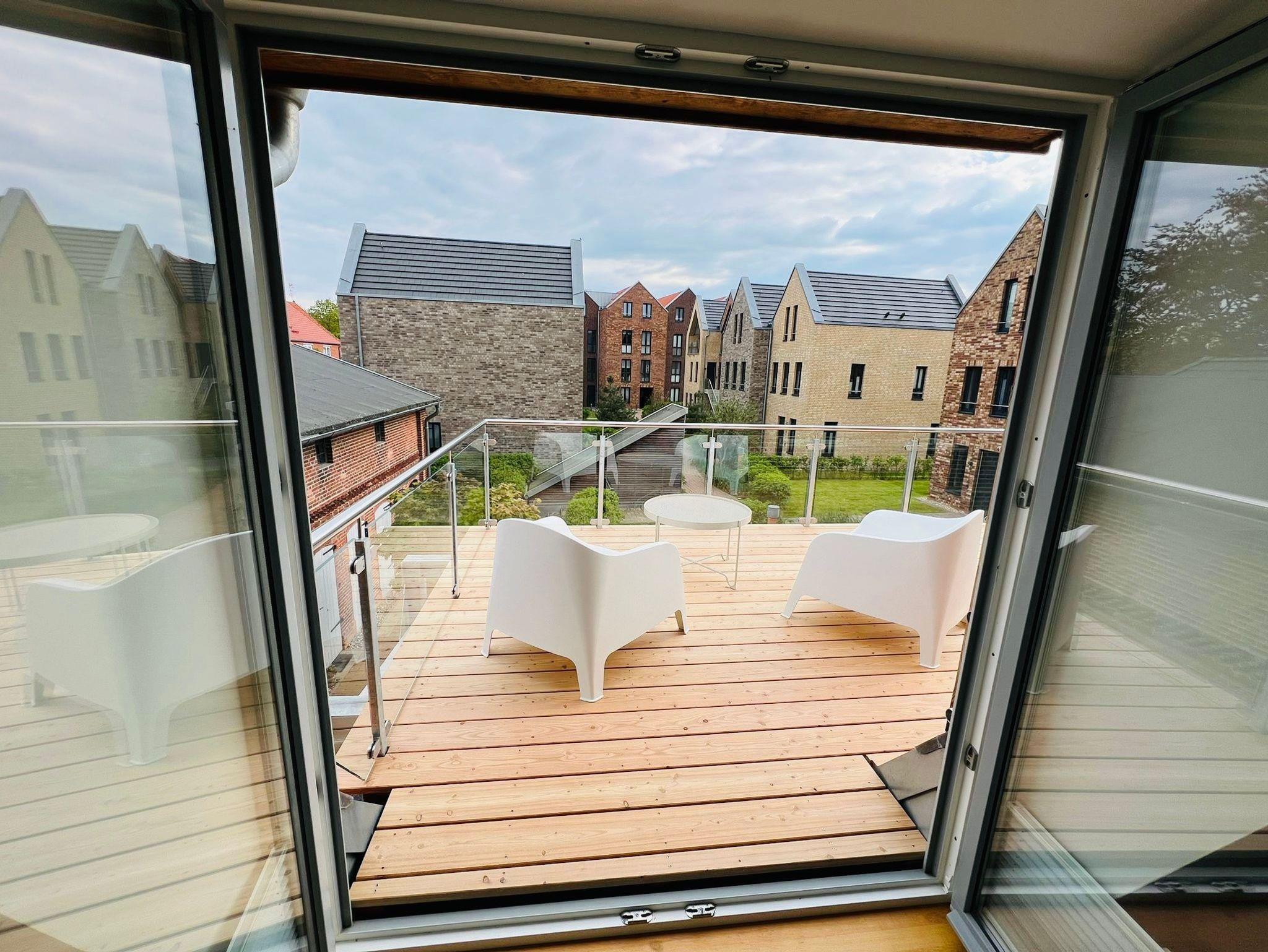 Der geschmackvolle Wohnbereich ist offen und mit gemütlicher Couch, Smart-TV und WLAN zur Unterhaltung ausgestattet. So kann man auch im Urlaub seine Lieblingsserien oder Filme per Stream schauen. Die Fenster in Südlage bringen viel natürliches Licht und bieten von der Couch einen direkten Blick in das Fischerdorf Heiligenhafen. Der im Mai 2024 neu errichtete Balkon in Süd-Ausrichtung mit herrlichem Blick bietet ganztägig einen sehr, sehr ruhigen Platz zum Entspannen.