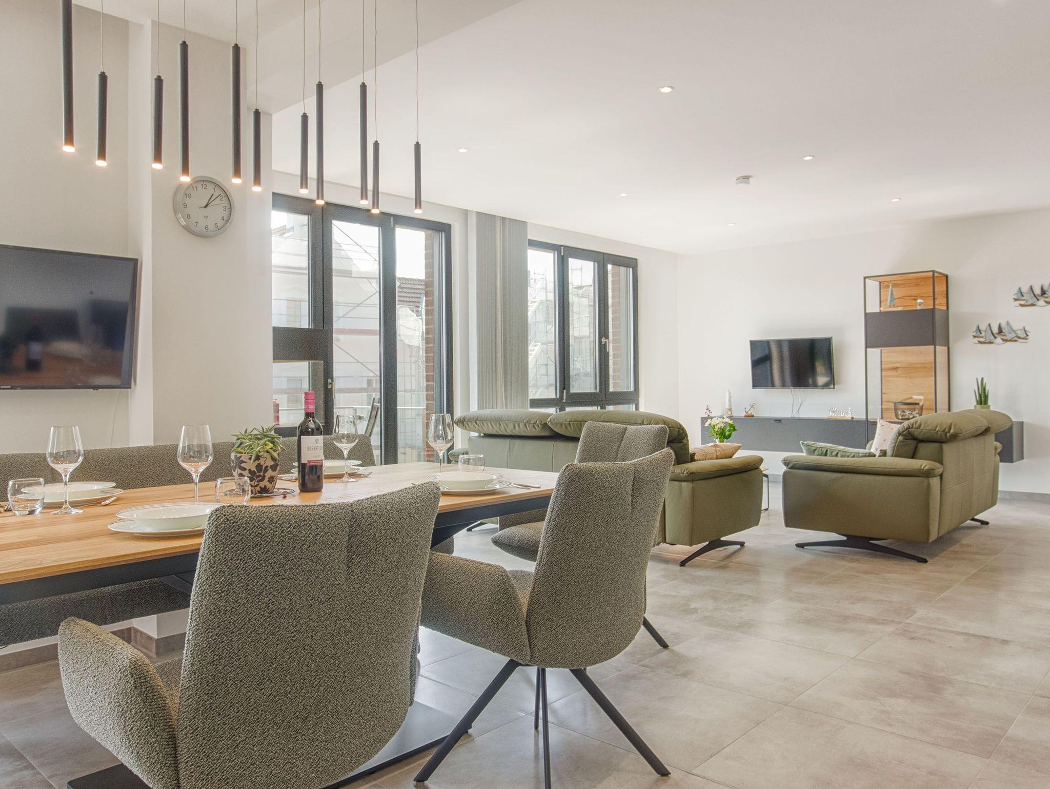 Im geschmackvoll eingerichteten Wohnbereich erwarten Sie zwei bequeme Couches (eine davon mit Schlaffunktion), ein Relax Sessel, Smart-TV, WLAN sowie Streaming-Möglichkeiten. Eine Auswahl an Büchern und Spielen rundet das Unterhaltungsangebot ab ? Langeweile kommt hier garantiert nicht auf.