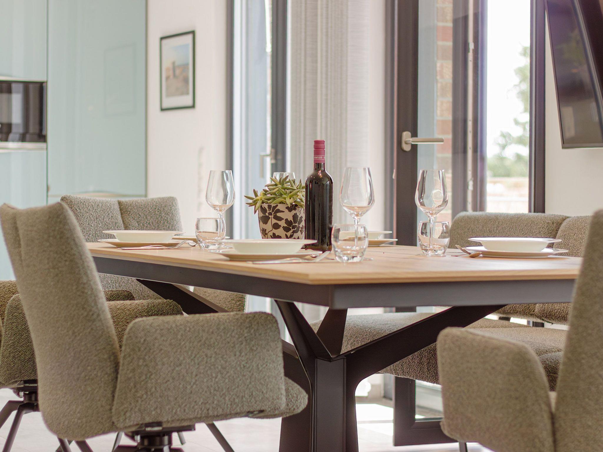 Die offene, voll ausgestattete Küche mit Kochinsel lässt keine Wünsche offen. Kleinere Hilfen sind vorhanden. Ob Snack oder großes Menü alles ist möglich. Der angrenzende Essbereich mit ausziehbarem und unterfahrbarem Tisch bietet viel Platz für gesellige Mahlzeiten mit Familie, Freunden oder Urlaubsbekanntschaften.