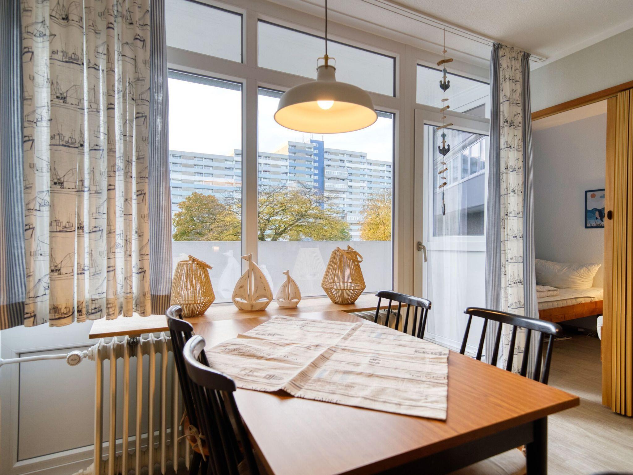 Diese gepflegte 2-Zimmer-Ferienwohnung im Haus Q des Ferienparks Heiligenhafen bietet auf 45?m² ausreichend Platz für bis zu 5 Personen und befindet sich in der 1. Etage bequem erreichbar über den Fahrstuhl. Der ruhige Balkon mit Blick auf den Innenhof lädt zu entspannten Stunden ein.