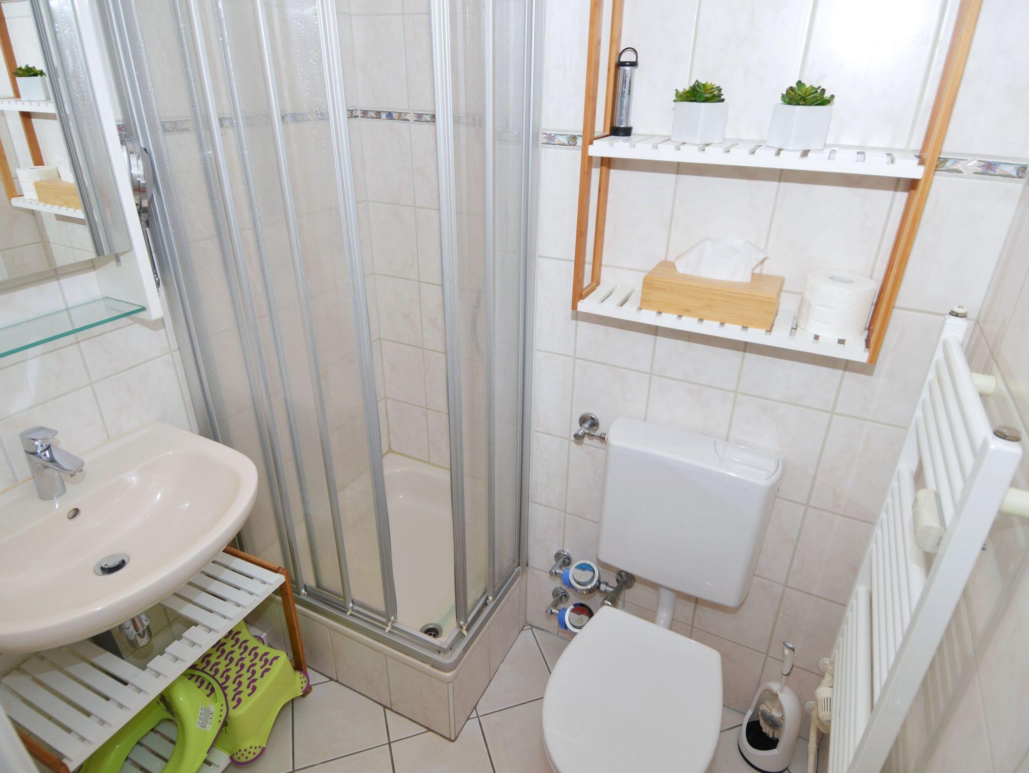 Die Duschkabine im Badezimmer sorgt dafür, dass Sie nach einem Tag am Strand immer frisch und erholt fühlen.