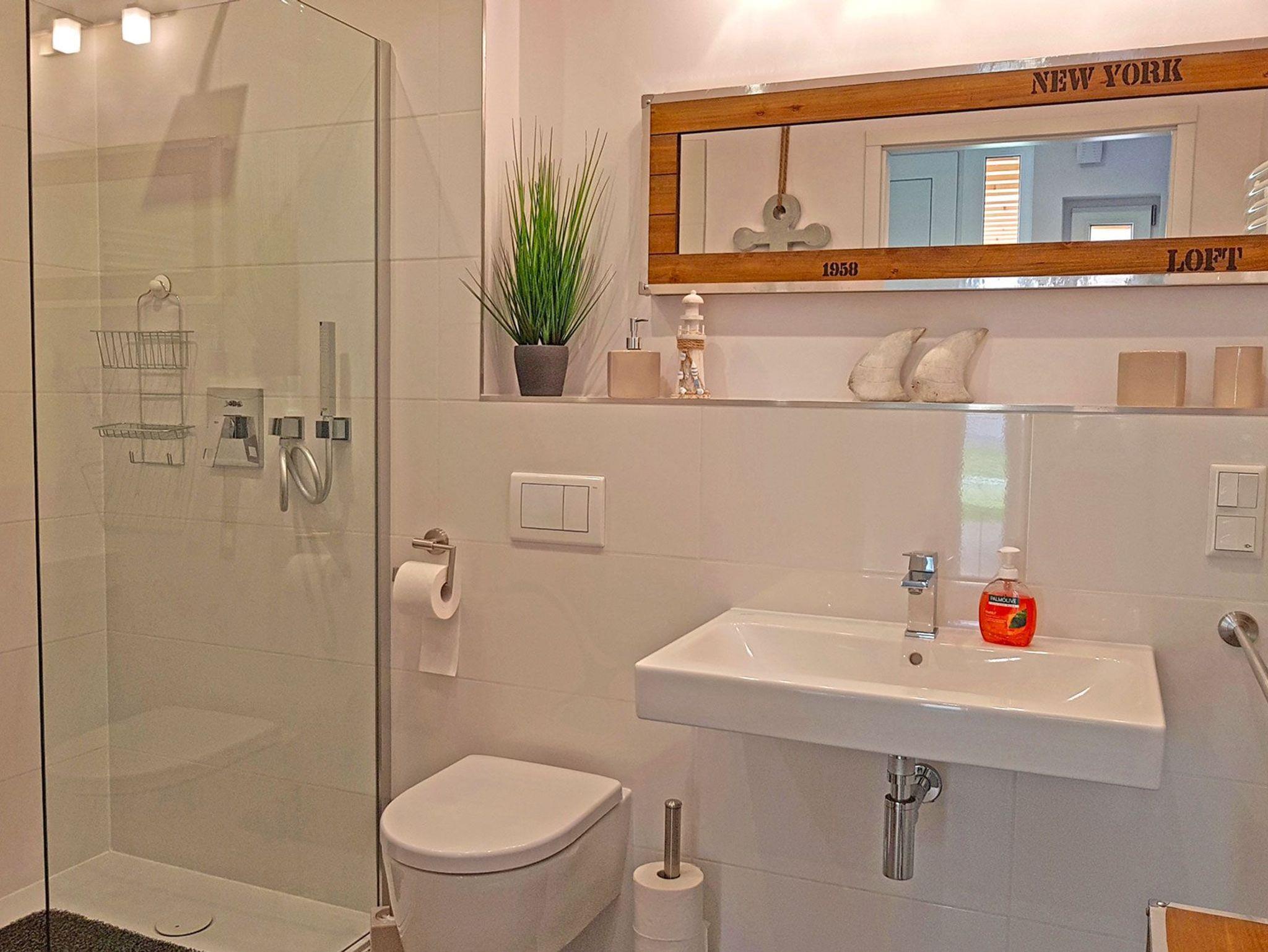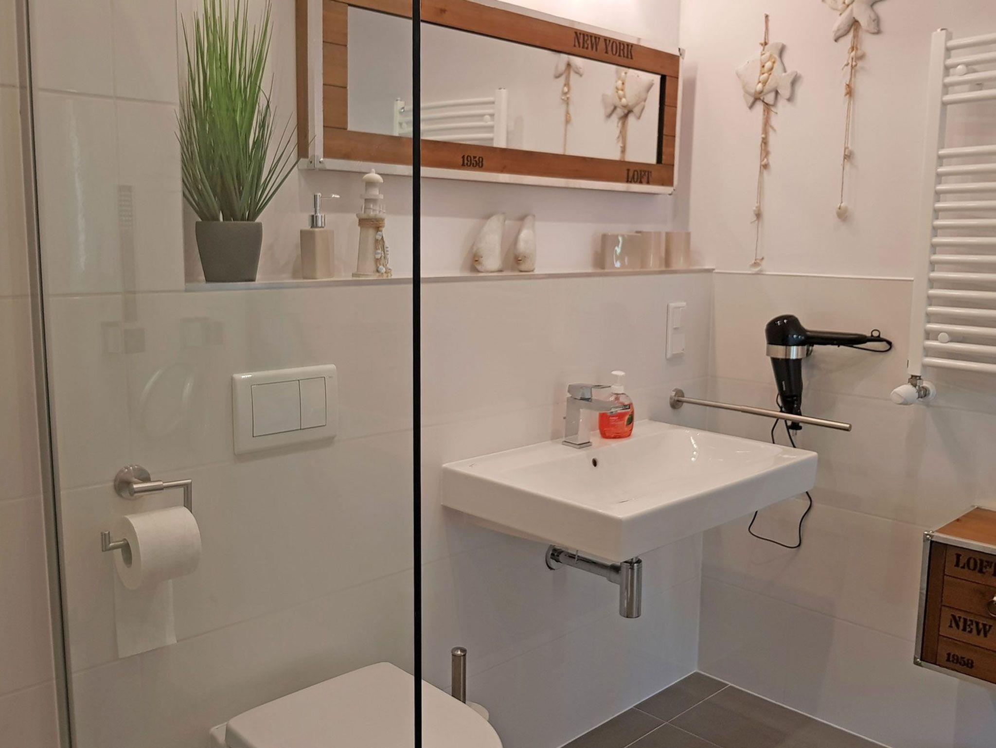 Das großzügige Badezimmer lädt zum Entspannen ein. Eine ebenerdige Dusche mit Rain-Shower-Funktion, ein Waschbecken, WC, Fön und Handtuchwärmer bieten höchsten Komfort. Als besonderes Highlight steht eine Infrarot-Sauna zur Verfügung ? perfekt, um nach einem ereignisreichen Tag neue Energie zu tanken.