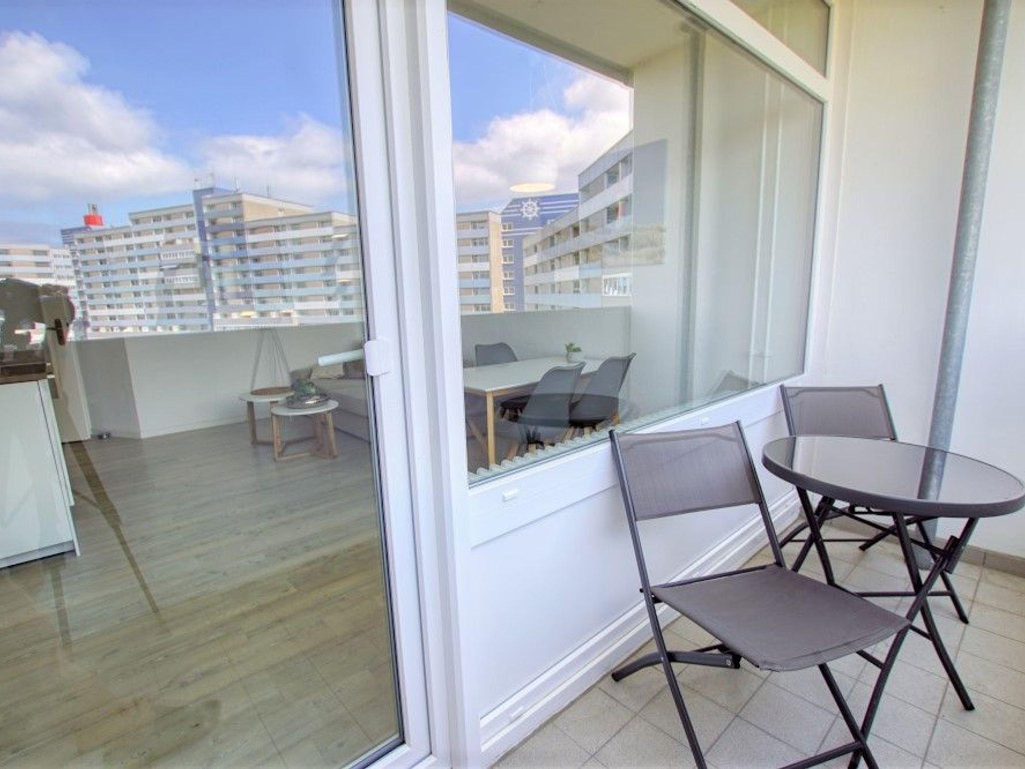 Die helle und modern ausgestattete Wohnung liegt im Haus N Ferienpark, in der 7. Etage, mit Balkon zum Innenhof, der einen schönen Blick auf den Binnensee und die Ostsee Richtung Fehmarn bietet.
