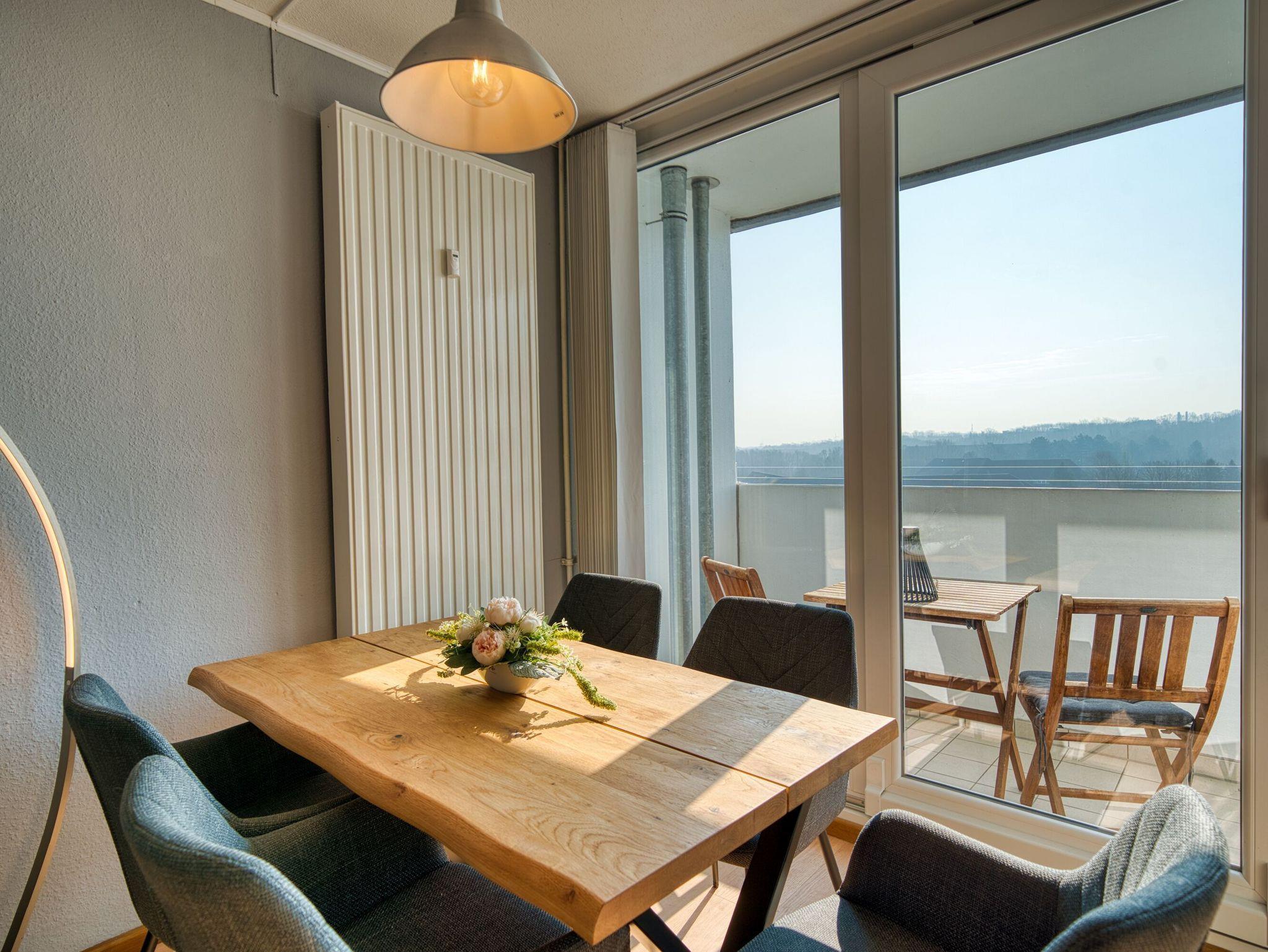 Besonderes Highlight: Glasschiebetür, die den Balkon mit dem Wohnraum verschmelzen lässt.