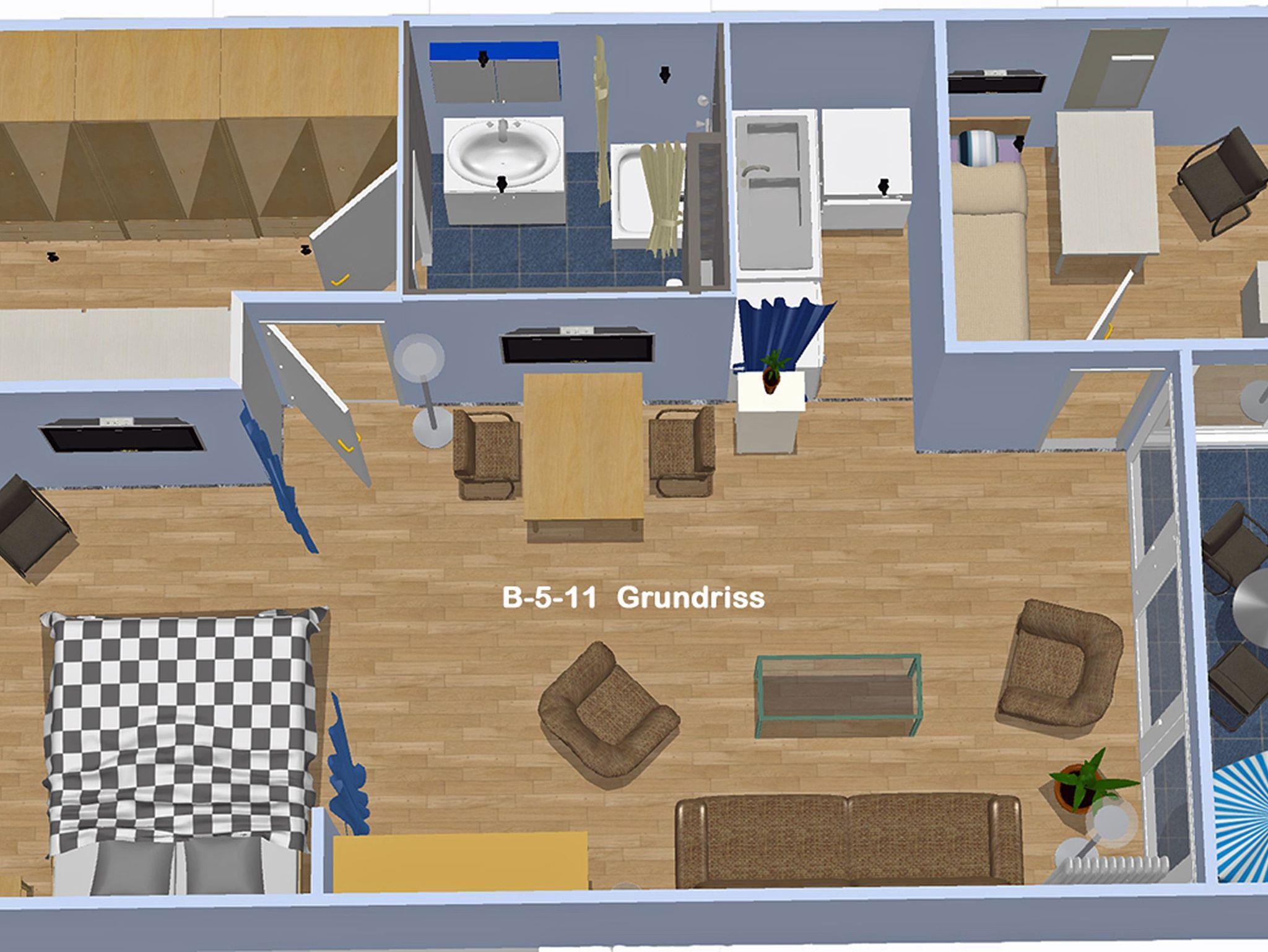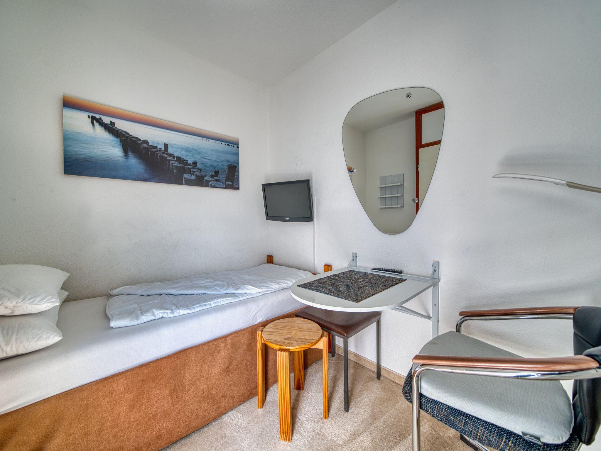 Diese 45 qm große Ferienwohnung in der 5. Etage des Hauses B bietet Platz für bis zu 3 Personen und ist komfortabel eingerichtet.