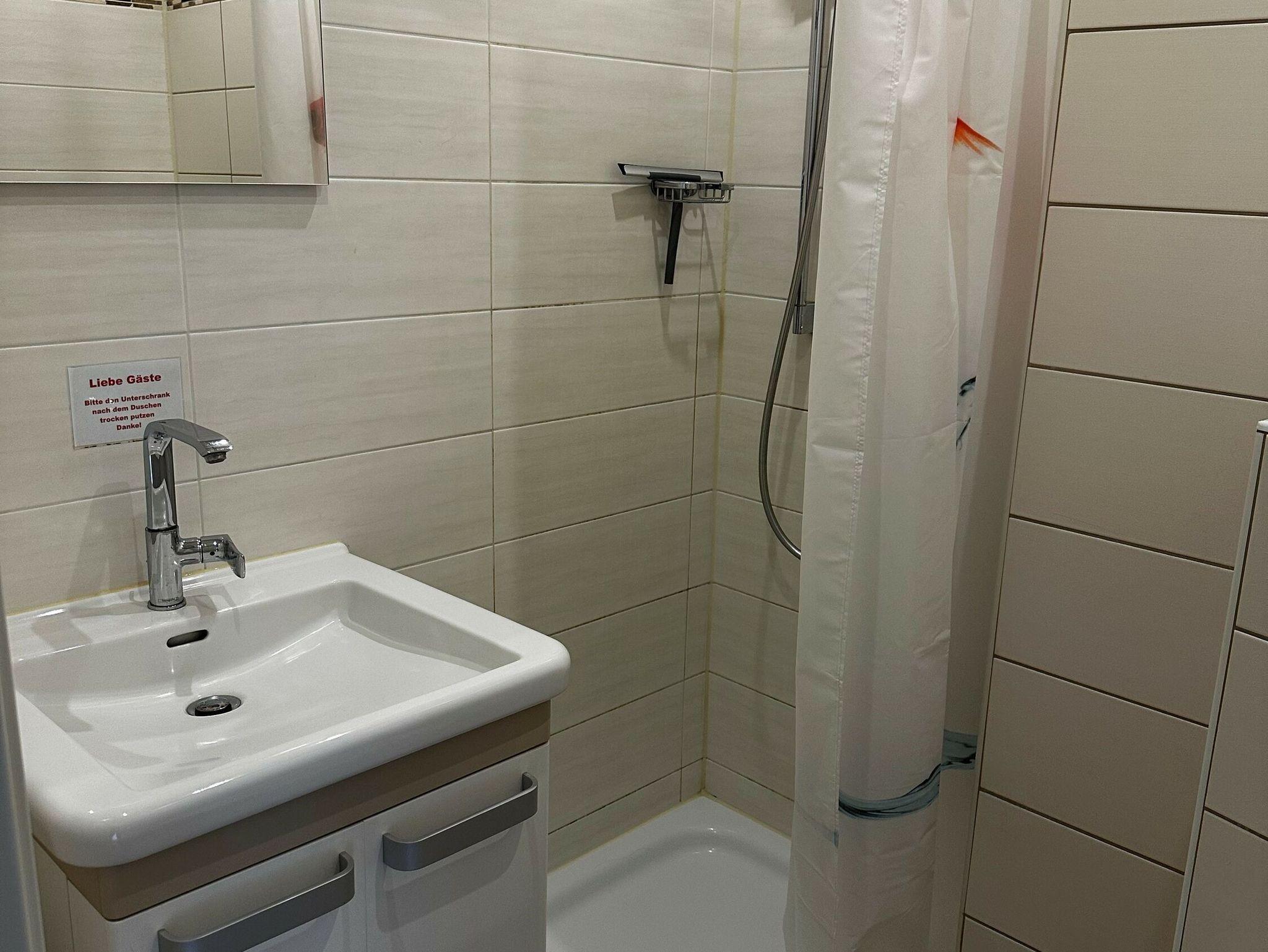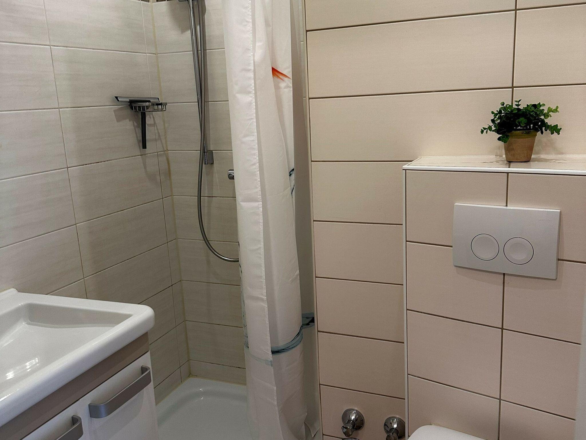 Bad: Dusche (niedrige Einstiegshöhe), Handtuchheizkörper, Fön
