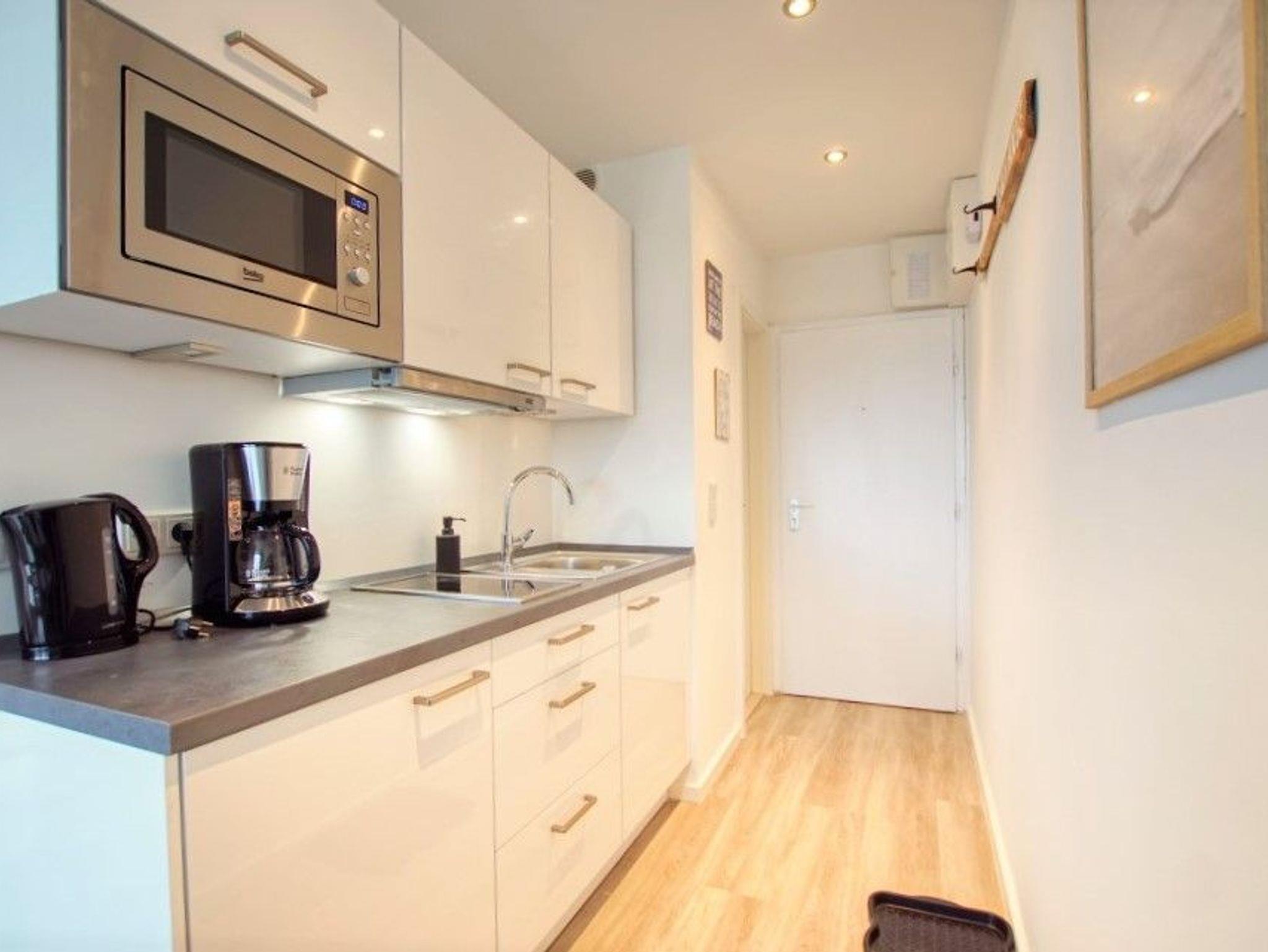 Genießen Sie einen unvergesslichen Urlaub in dieser kernsanieren Ferienwohnung im Appartementhaus Schöne Aussicht am Steinwarder 37 in Heiligenhafen. Direkt am Strand gelegen, bietet das Appartement eine fantastische Lage, von der Sie vom Balkon aus sogar das Meeresrauschen hören können!