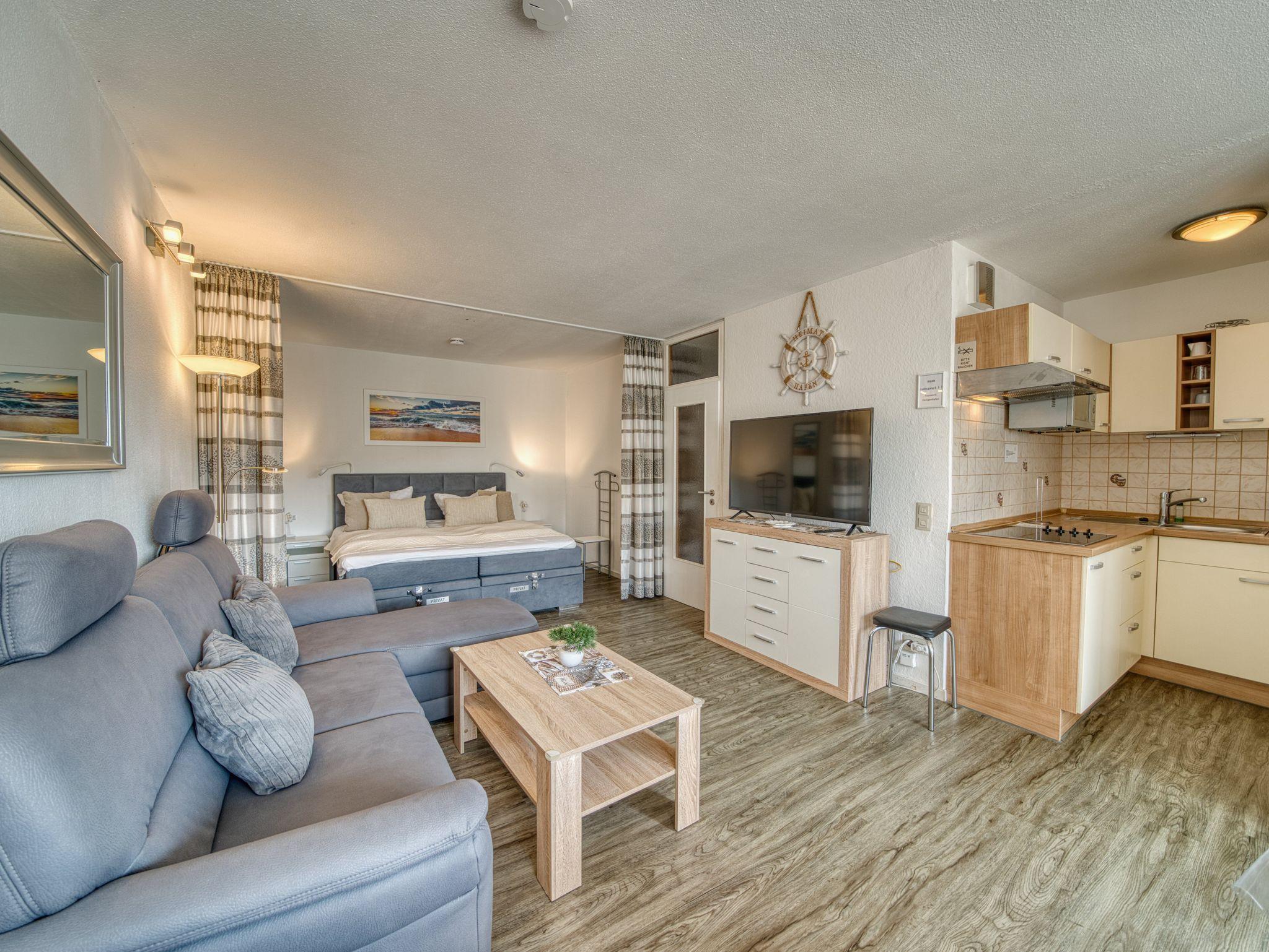 Insgesamt verfügt die Wohnung über eine Wohnfläche von 51 qm, die wie folgt aufgeteilt ist: ein Wohn- und Esszimmer mit einem großen Flachbildfernseher und einer Musikanlage, ein Schlafbereich mit einem Doppel-Boxspringbett (180 × 200 cm), der durch einen Vorhang vom Wohnzimmer abgetrennt werden kann, ein separates Kinderzimmer mit einem Etagenbett, eine komplett ausgestattete Küche mit Kühlschrank und Gefrierfach, 4-Plattenceran und verschiedenen Kleingeräten (wie z.B. Senseo, Toaster, Kaffeemaschine, Wasserkocher, Mikrowelle, Mixer, Eierkocher), sowie ein Badezimmer mit WC und Dusche. Das Kinderzimmer ist mit Verdunkelungsrollos und die Wohnräume mit Vorhängen ausgestattet. Zusätzlich sind an allen Fenstern mechanische Jalousien zur Verdunklung vorhanden. Die Wohnung bietet Platz für maximal 4 Personen und ist ein Nichtraucherappartement, in dem Haustiere nicht erlaubt sind. Als Bonusleistung steht WLAN zur Verfügung.