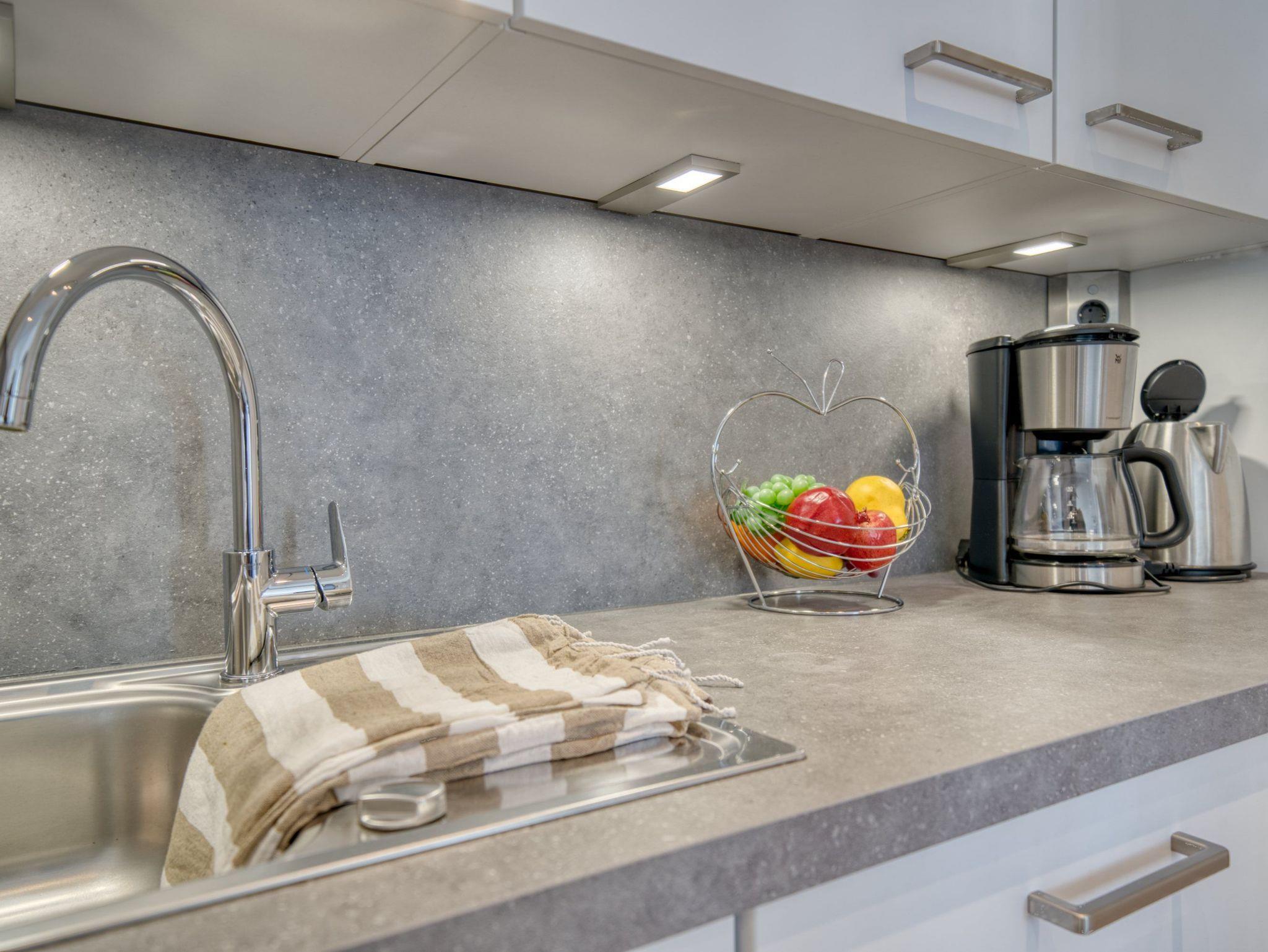 Hochwertig ausgestattete Küche im Eingangsbereich