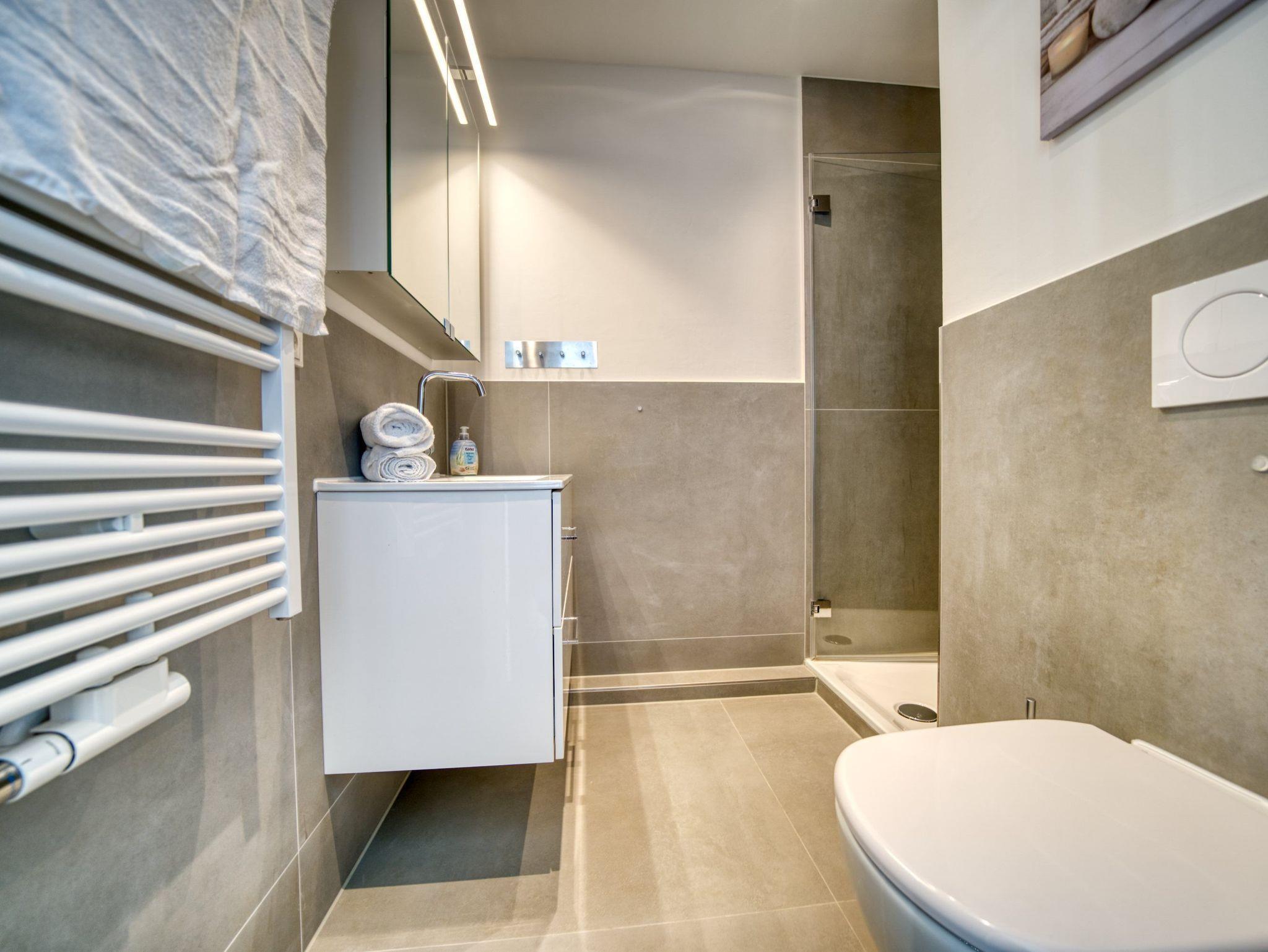 Modernes Bad mit großzügiger Regendusche und stilvollem Design