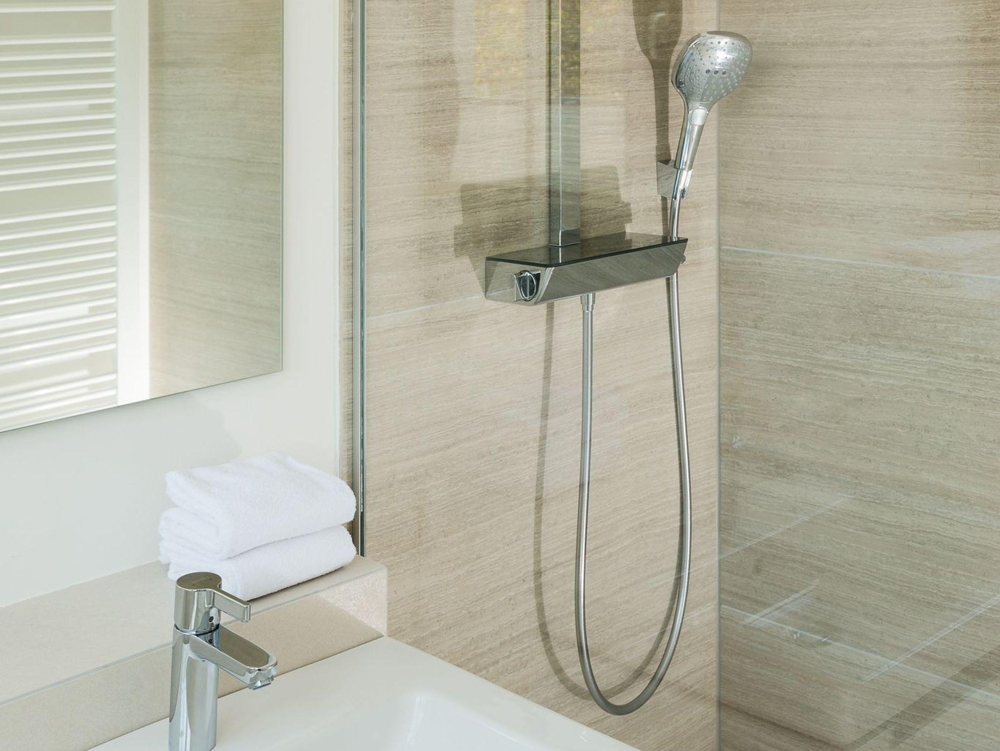 Das Badezimmer ist mit einer großzügigen Dusche ausgestattet und bietet Ihnen einen Rückzugsort, um sich nach einem langen Urlaubstag zu erfrischen. Zur Wohnung gehört außerdem ein Parkplatz direkt am Haus, was Ihnen zusätzliche Bequemlichkeit bietet.