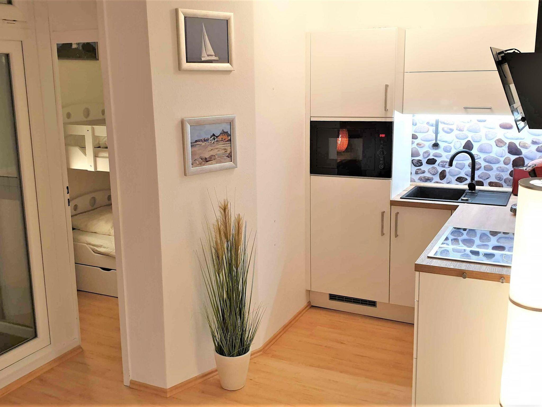 Die Wohnung besticht durch ihr maritimes Strandflair und bietet komfortable Ausstattung für einen entspannten Urlaub an der Ostsee.