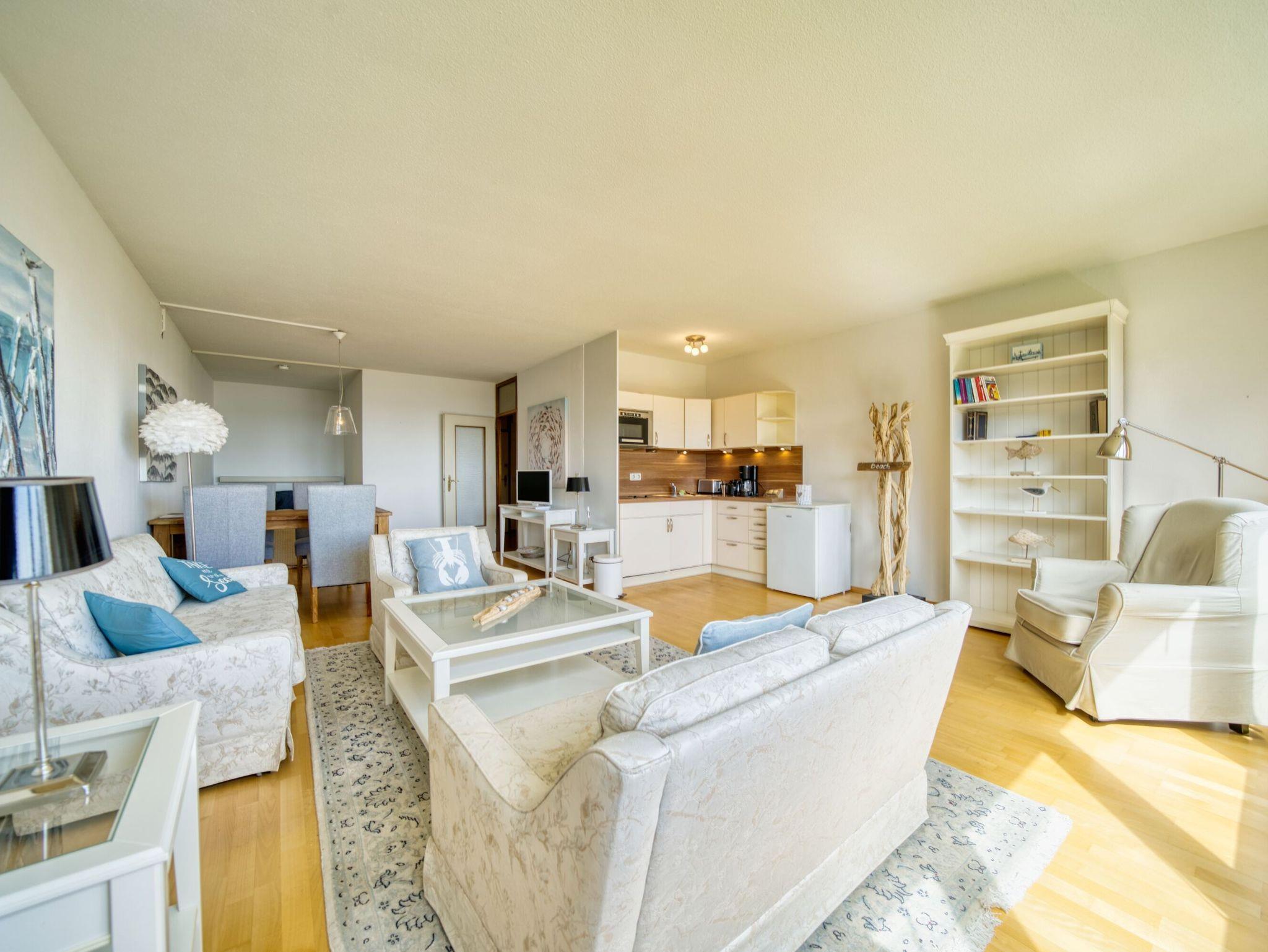 Diese gemütliche Ferienwohnung im 5. Obergeschoss des Hauses G im Ferienpark Heiligenhafen bietet auf 53 m² ausreichend Platz für bis zu 3 Personen. Genießen Sie den Blick über den Innenhof und den Binnensee und erleben Sie einen entspannenden Aufenthalt in dieser funktional eingerichteten Wohnung.
