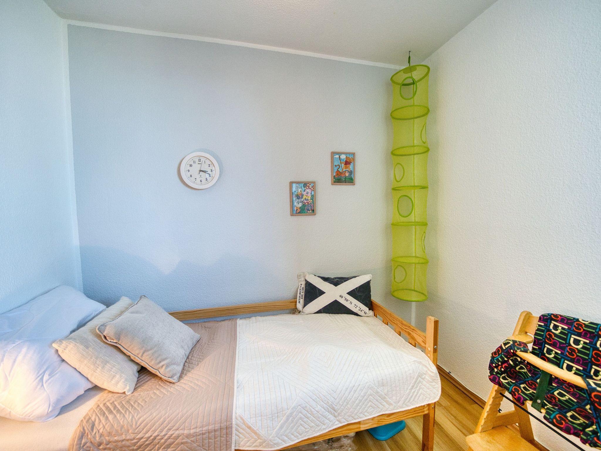 Im Schlafbereich finden Sie ein Doppelbett, das für eine erholsame Nachtruhe sorgt. Das Kinderzimmer ist mit einem Einzelbett ausgestattet.