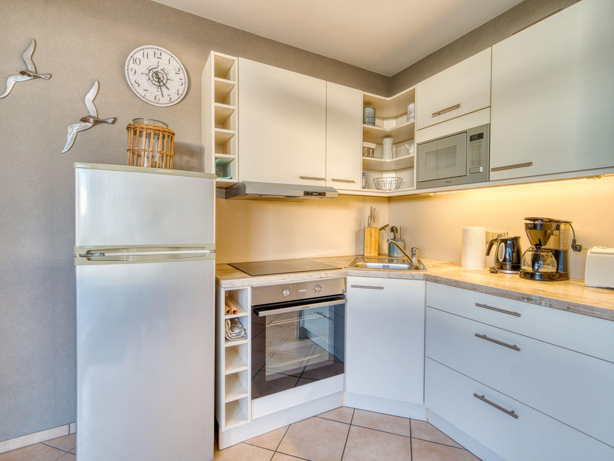 eine moderne, voll ausgestattete Küche mit Backofen, Mikrowelle und allem, was Sie für Ihren Aufenthalt benötigen