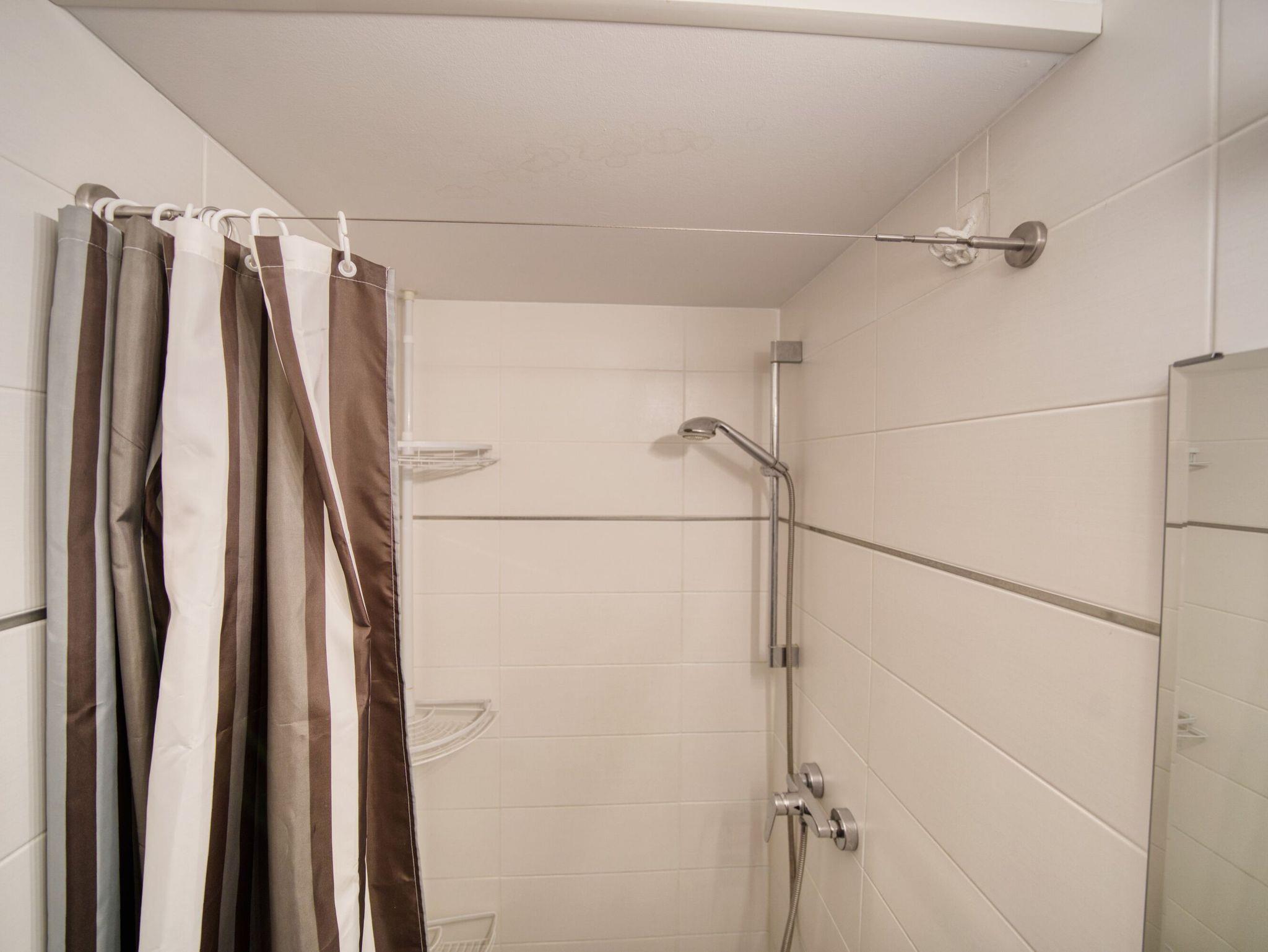 Badezimmer: Dusche, WC und Handtuchtrockner