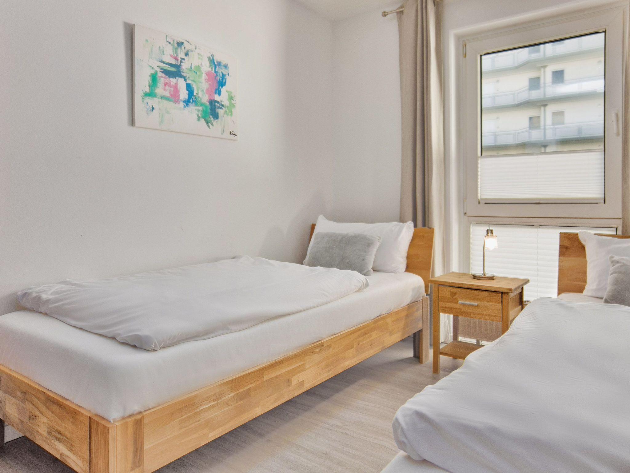 Schlafzimmer 2 bietet zwei Einzelbetten (90x200 cm) und einen 32-Zoll-TV für individuelle Unterhaltung.