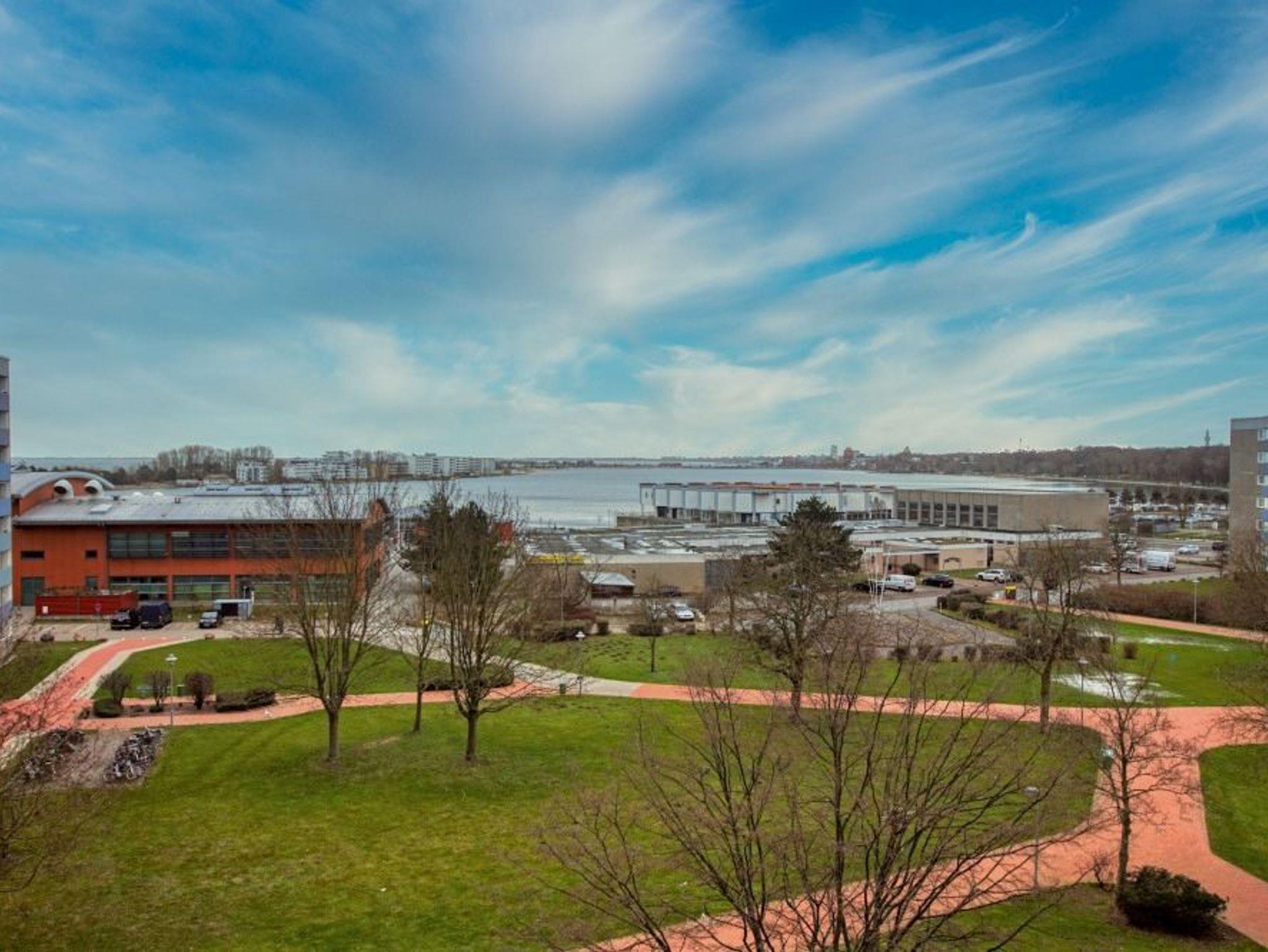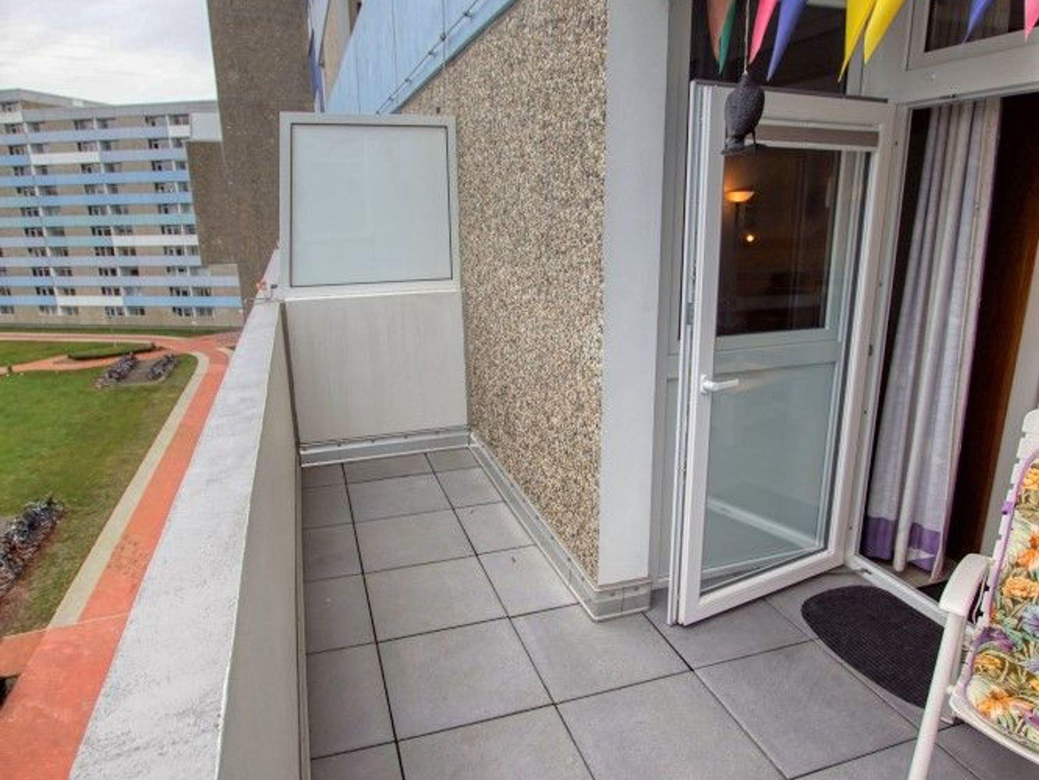 Die Ferienwohnung im Haus F, 5. Etage, mit Balkon zur Ostseite, bietet einen herrlichen Blick auf den großen Binnensee und den Innenhof.