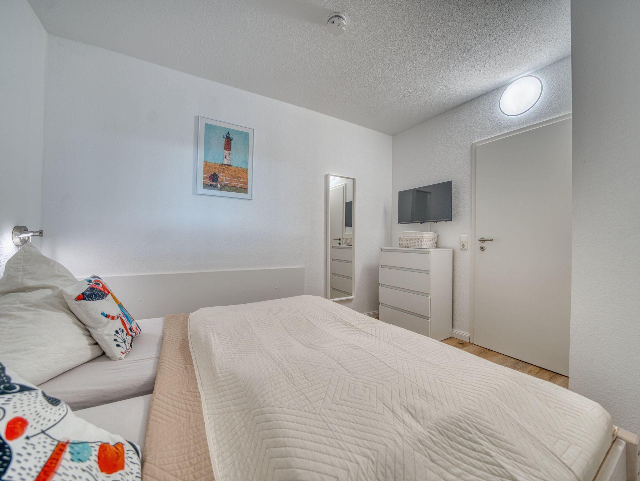 Separates Elternschlafzimmer mit Doppelbett (zwei Einzelbetten auseinander- und zusammenschiebbar) und zusätzlichem Fernseher
