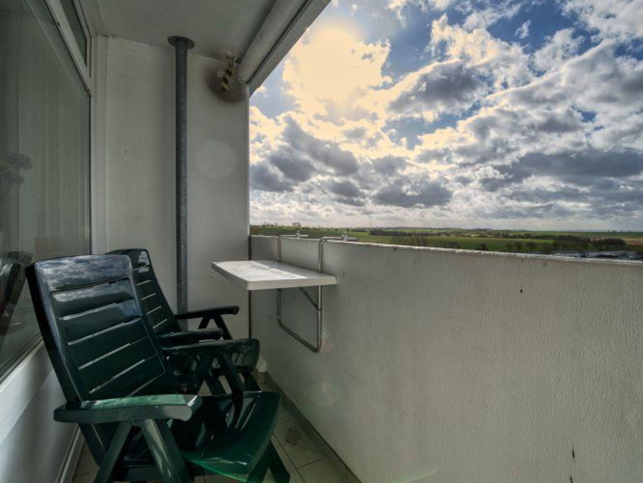 Helle Ferienwohnung im Haus M Ferienpark, 4. Etage, mit Balkon zur Südwestseite. Genießen Sie die Sonne und einen schönen Blick auf die Ostsee.