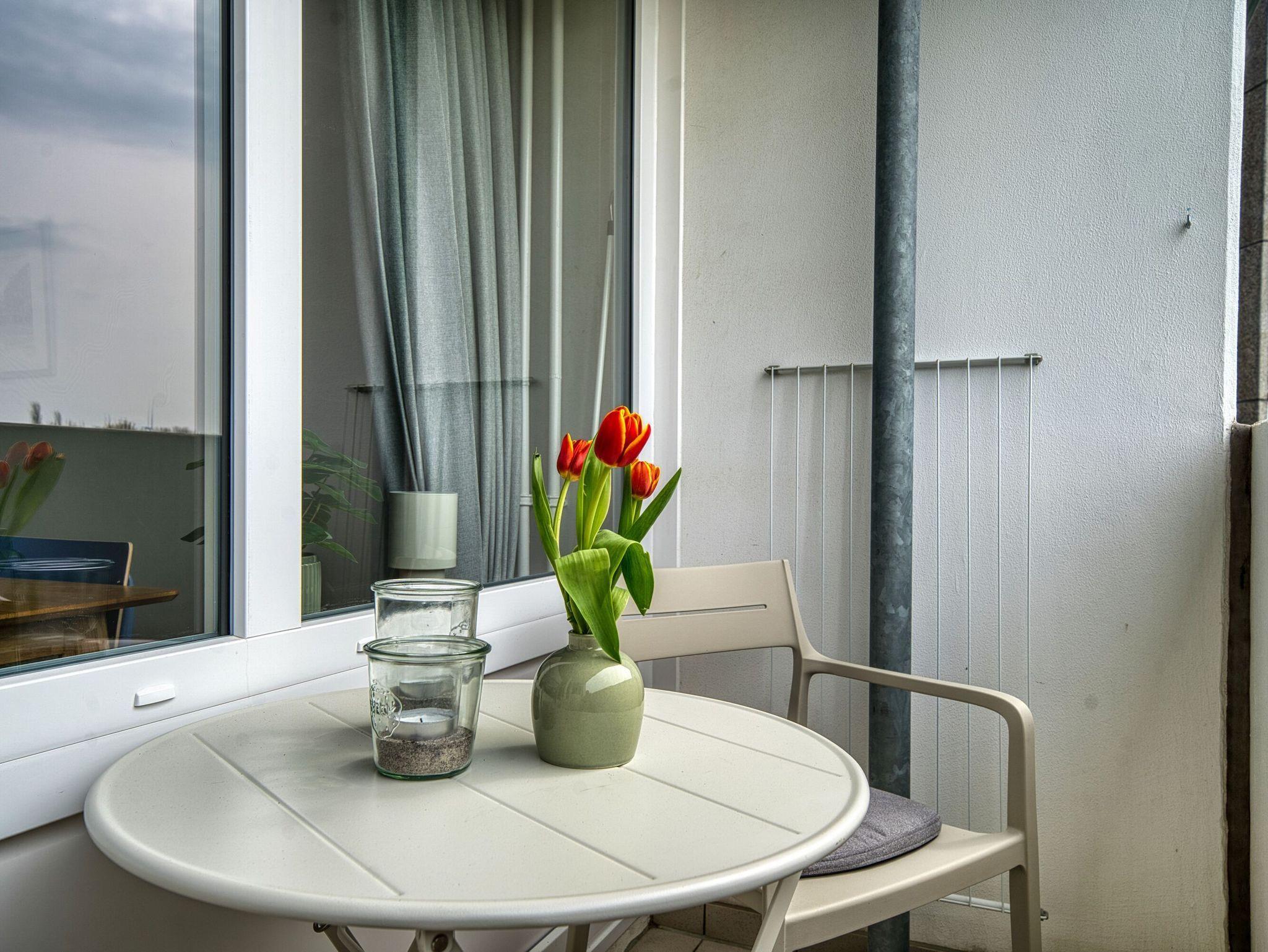 Genießen Sie Ihre Mahlzeiten im Essbereich mit einem großen Esstisch am Fenster. Hier können Sie den Blick ins Grüne genießen und sich beim Frühstück oder Abendessen entspannen. Die Südseite der Wohnung sorgt zudem für viel Sonnenlicht, das den Raum noch freundlicher und einladender macht.