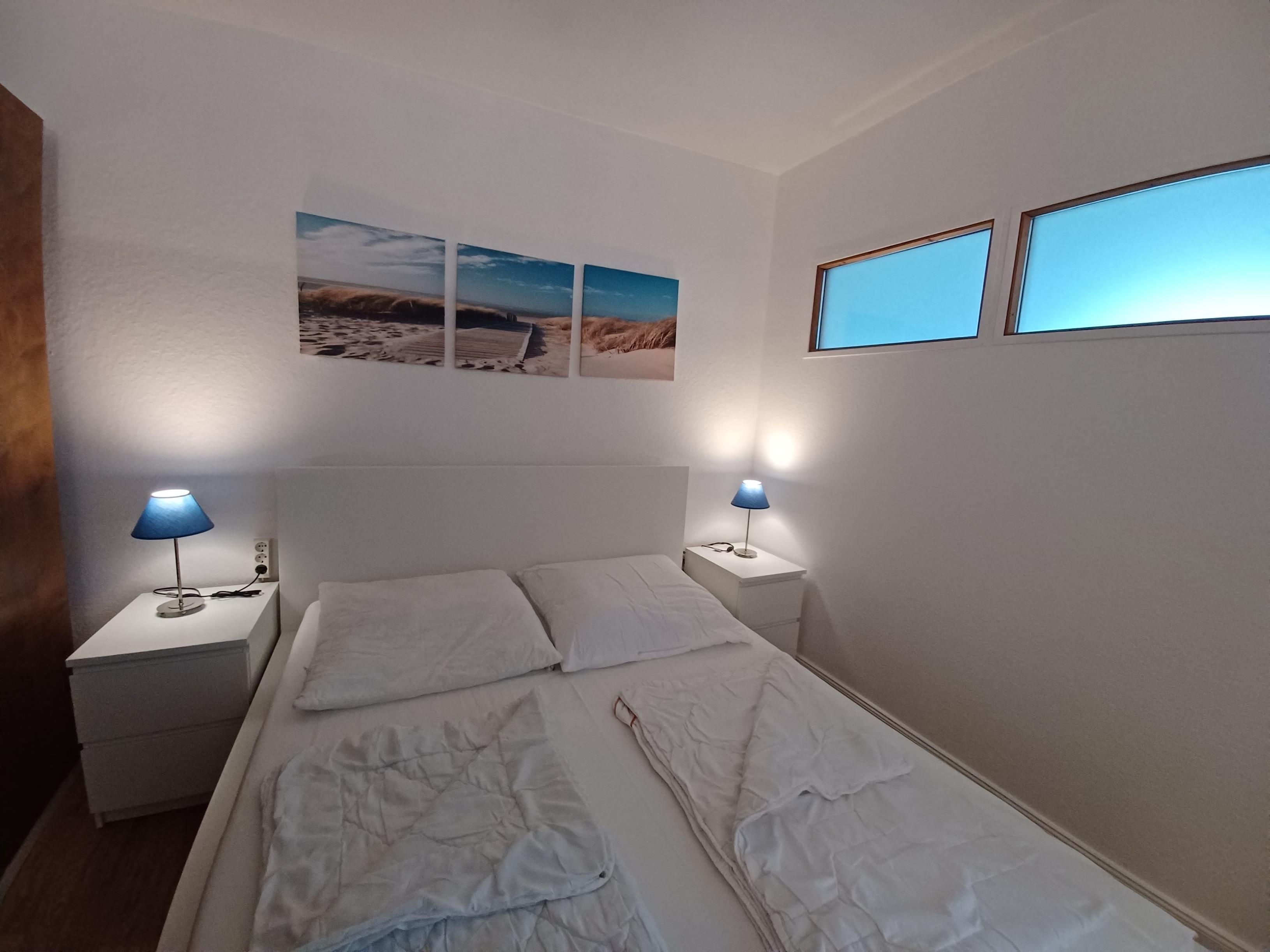 Erwachsene + 2 Kinder) gliedert sich auf ca. 41 qm in einen kombinierten Wohn-Schlafraum mit einem Essplatz am Fenster, Sitzgruppe, Doppelbett und dem tollen Blick aus jedem Fenster auf Strand und Meer. Das Kinderzimmer wartet mit 2 Einzelbetten und einem 2. TV auf seine kleinen Gäste.