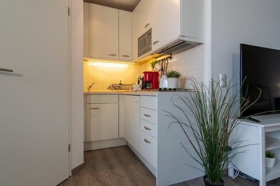 Der Elternschlafbereich befindet sich im hinteren Bereich und ist durch zwei halbe Wände optisch vom Wohnzimmer abgeteilt. Der offene Küchenbereich ist, für den Urlaubsbedarf, voll ausgestattet. Zusätzlich steht Ihnen noch eine Mikrowelle zur Verfügung.