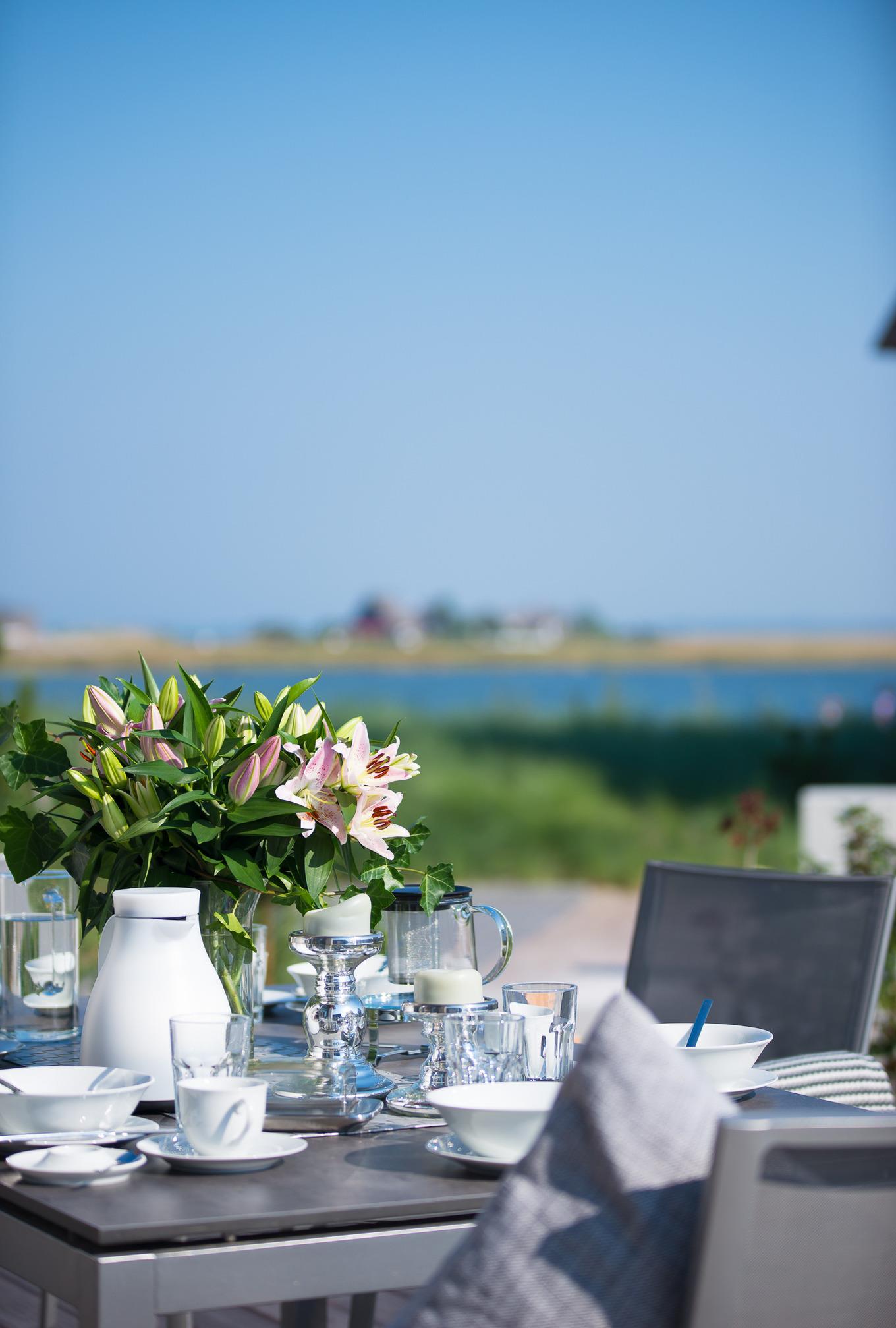 Neues, qualitativ hochwertig eingerichtetes Domizil mit finnischer Sauna, luxuriösem Wohn-/Essbereich, Kamin, 3 Schlafzimmer (insgesamt 6 Erwachsenenbetten), großzügiger holzgetäfelter Terrasse.