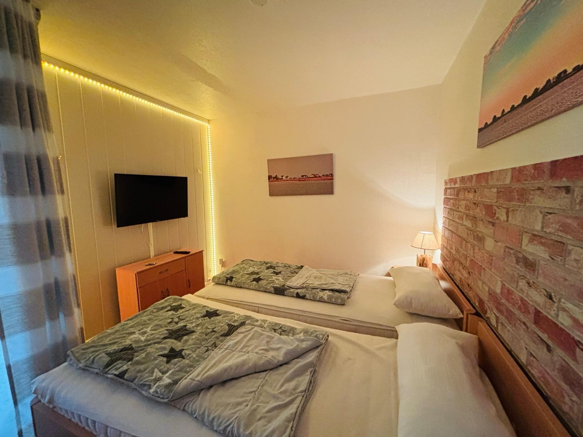 Die Wohnung umfasst einen Flur mit einem großzügigen Schrank, ein modernes Duschbad, eine offene Küche mit einer gemütlichen Essecke sowie einen Schlafbereich mit einem Doppelbett und TV. Im Wohnzimmer erwartet Sie ein 39 Zoll großer Flachbildschirm. Kostenloses WLAN steht Ihnen selbstverständlich zur Verfügung.