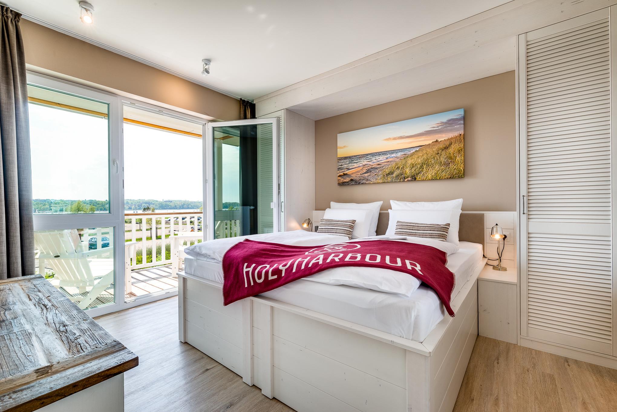 Den Außenbereich könnt ihr im Übrigen auch vom Schlafzimmer aus erreichen. Dies ist besonders toll, da ihr vom Schlafzimmer ins Bad und weiter in die eigene Sauna gehen könnt. Sauna? Richtig, eine eigene Sauna bei euch im Apartment - danach dann eine Abkühlung an der frischen Ostseeluft – was will man Meer?
