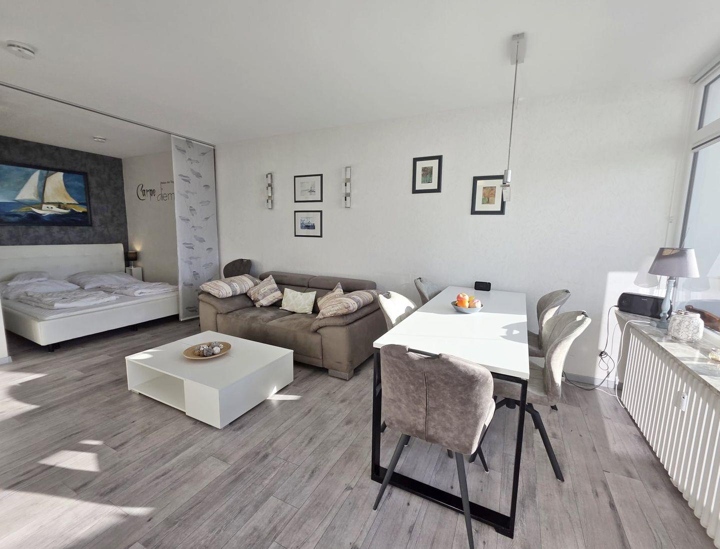 Moderne und neue Ferienwohnung mit wunderschönem Ausblick über Heiligenhafen sowie den Binnen- und die Ostsee in der 12. Etage für max. 5 Personen.