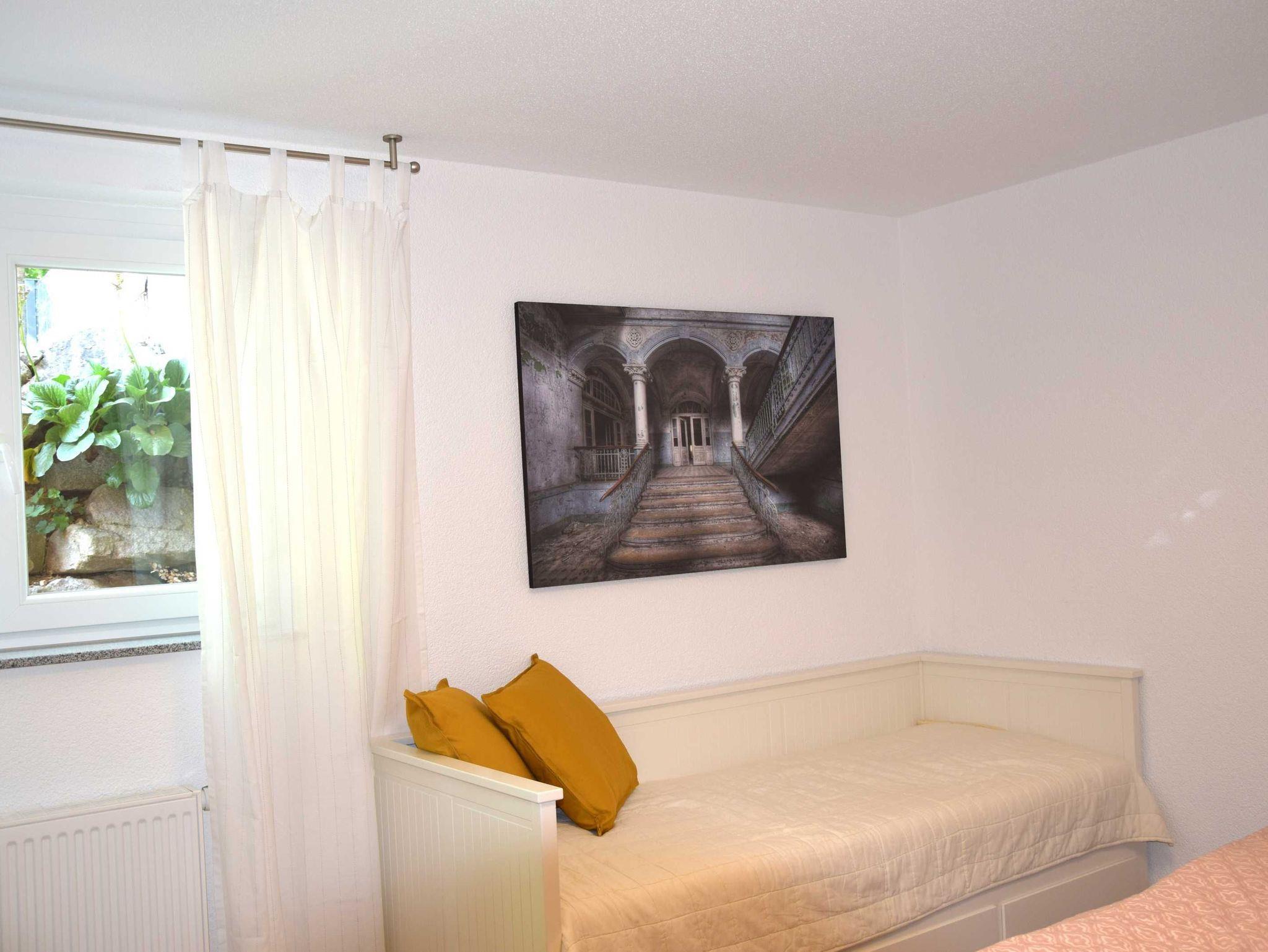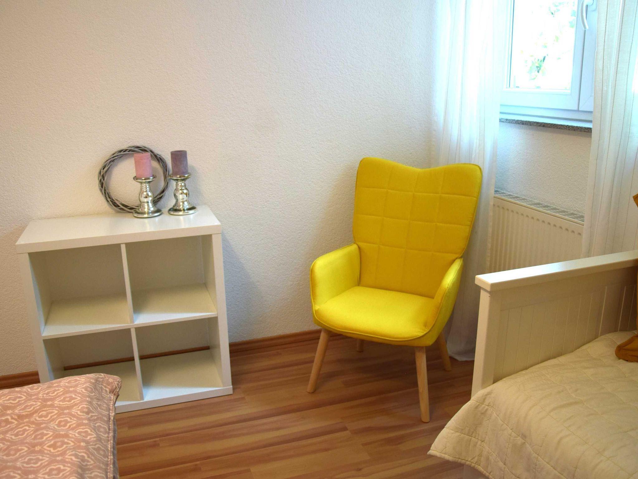 Ferienwohnung mit separatem Eingang in einem Einfamilienhaus, ruhig gelegen, mit Blick ins Grüne. Kostenlos parken direkt vor dem Eingang, überdachter Freisitz, wo sie gemütlich Frühstucken oder den Urlaubstag ausklingen können. Sauna befindet sich im Objekt, jedoch nicht in der Ferienwohnung.